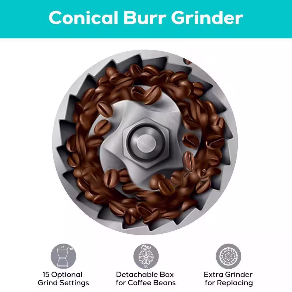 None 10 Cup Black Drip Espresso Machine Coffee Maker with Build in grinder, Automatic off, Milk Froth