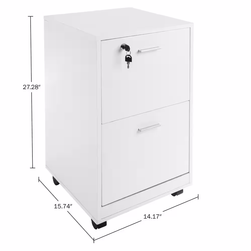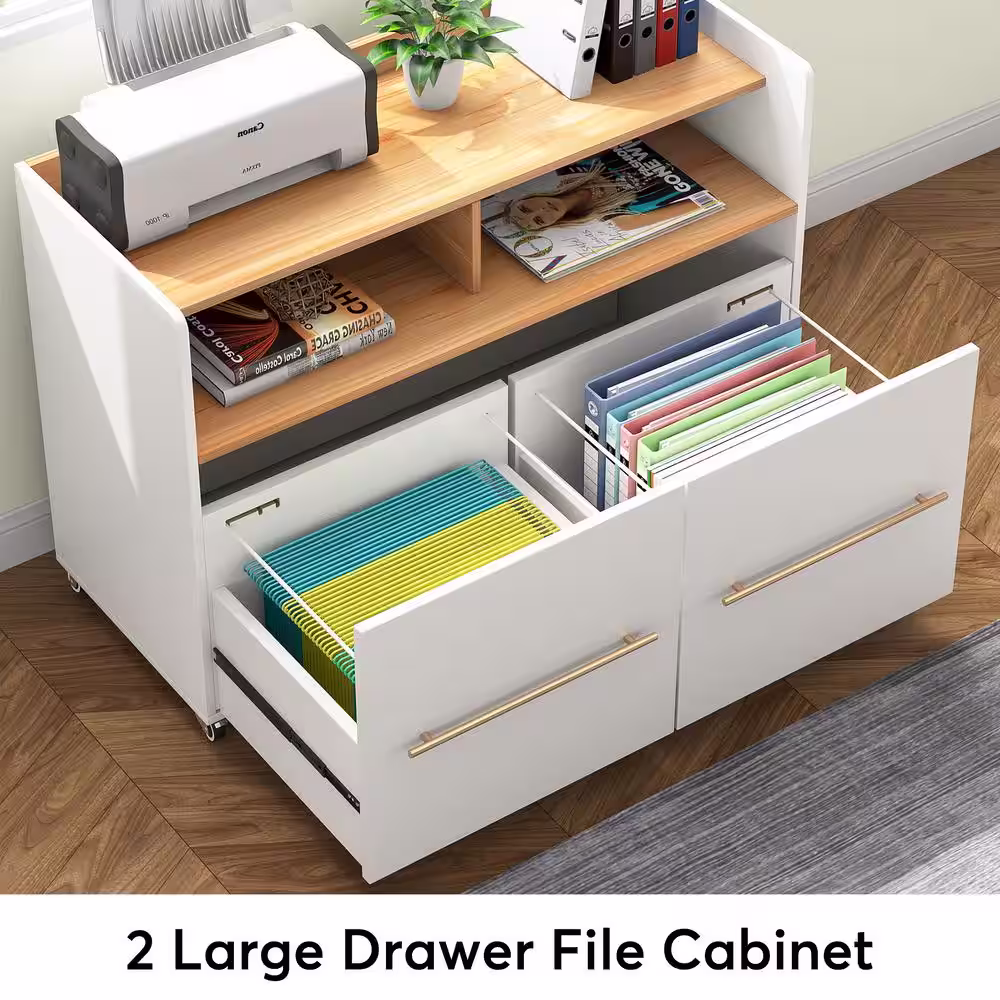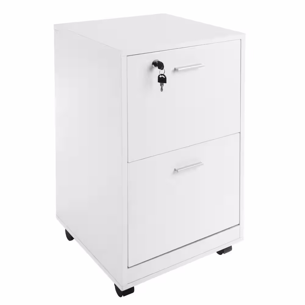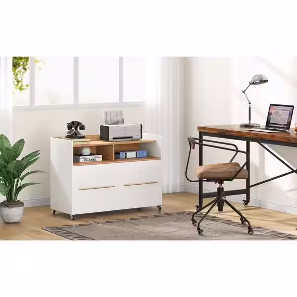 BYBLIGHT Atencio White 2-Drawer Mobile File Cabinet with Storage Shelves and Locking Casters for Home Office