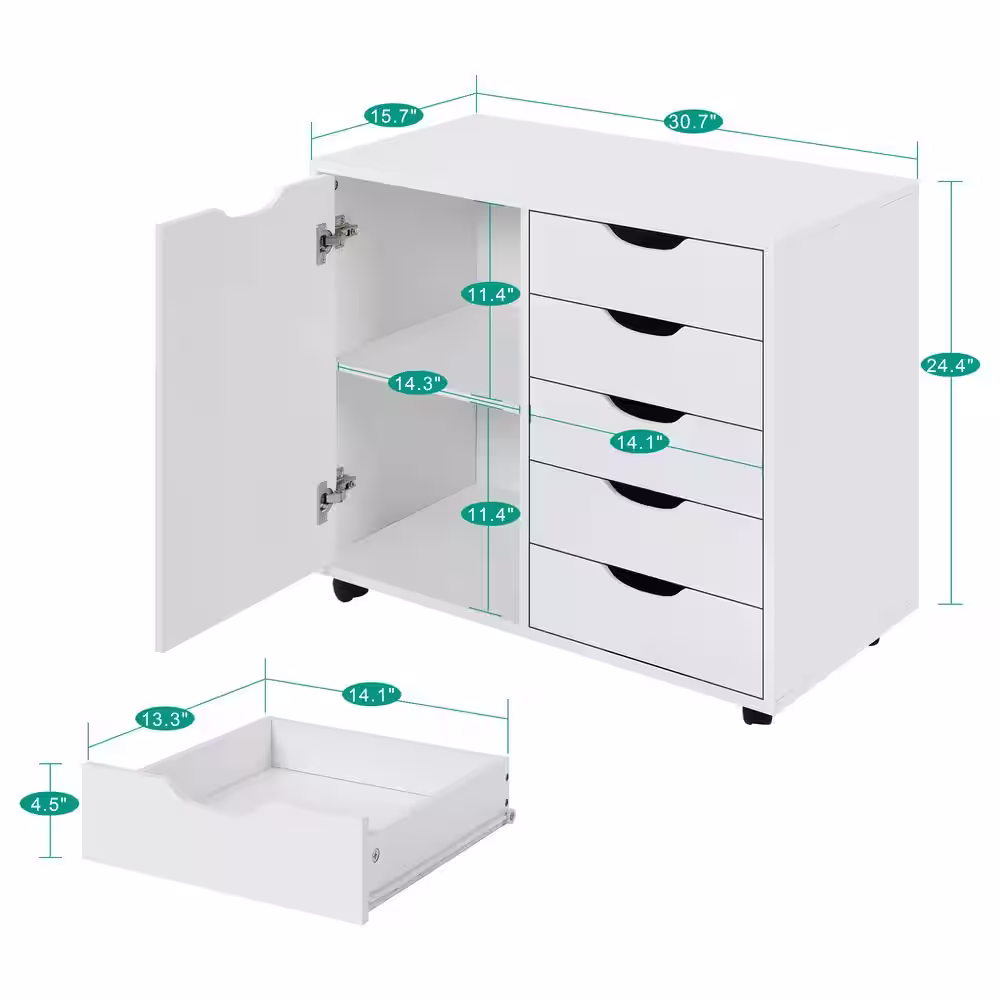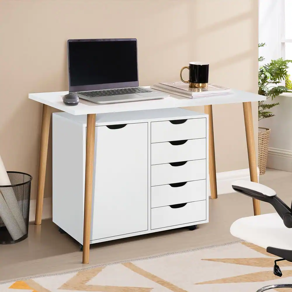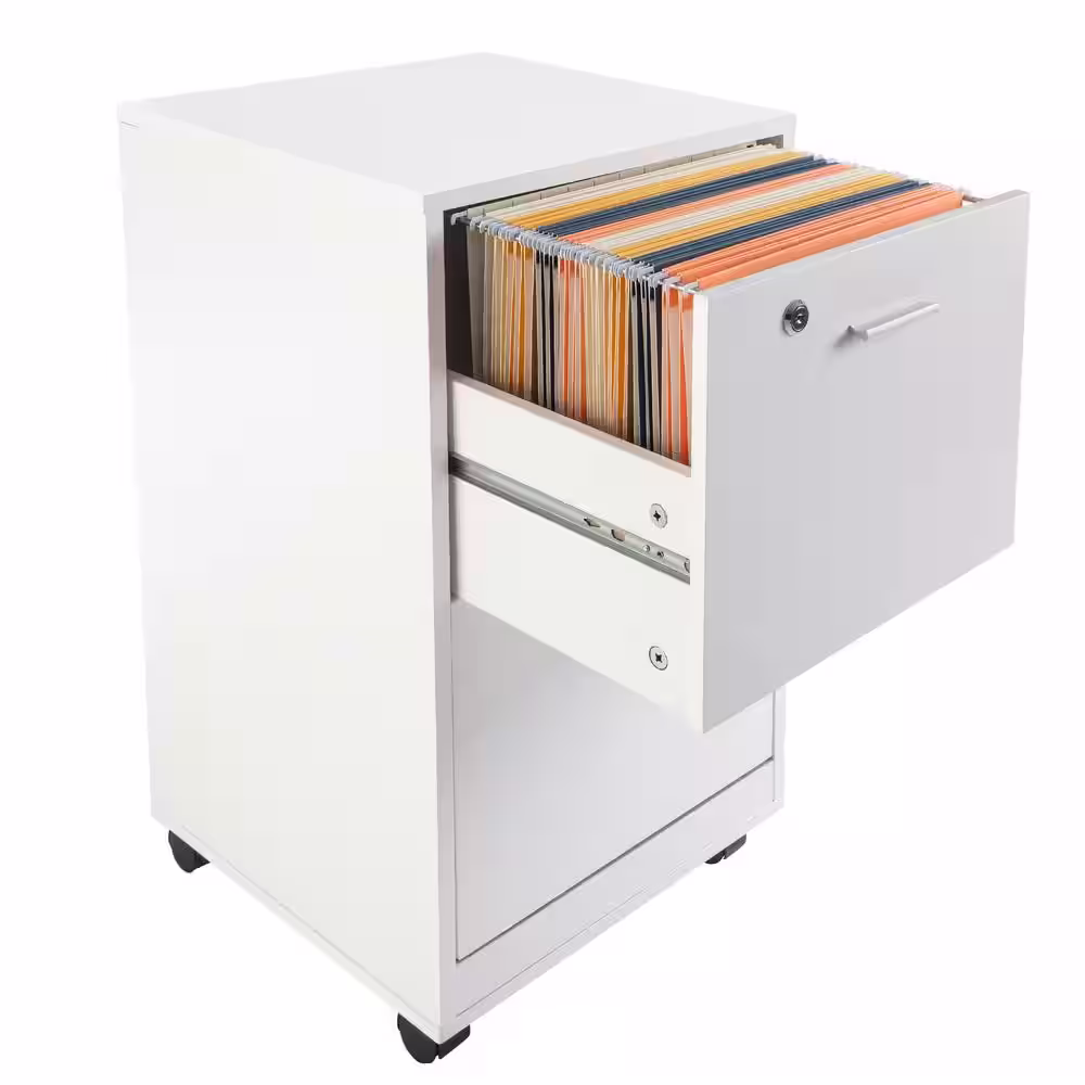 BYBLIGHT Atencio White 2-Drawer Mobile File Cabinet with Storage Shelves and Locking Casters for Home Office