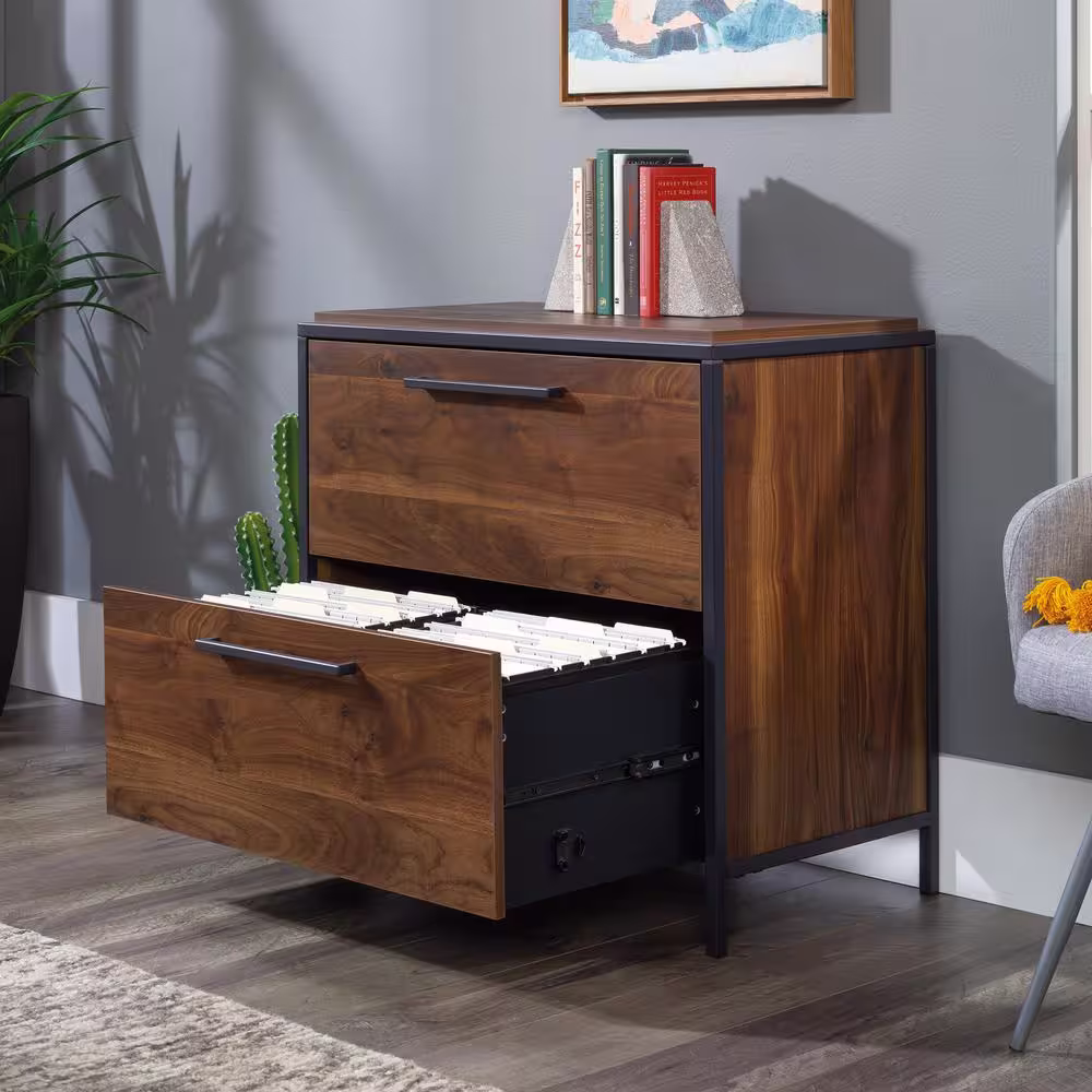 SAUDER Nova Loft Grand Walnut Decorative Lateral File Cabinet with 2-Drawers and Metal Frame