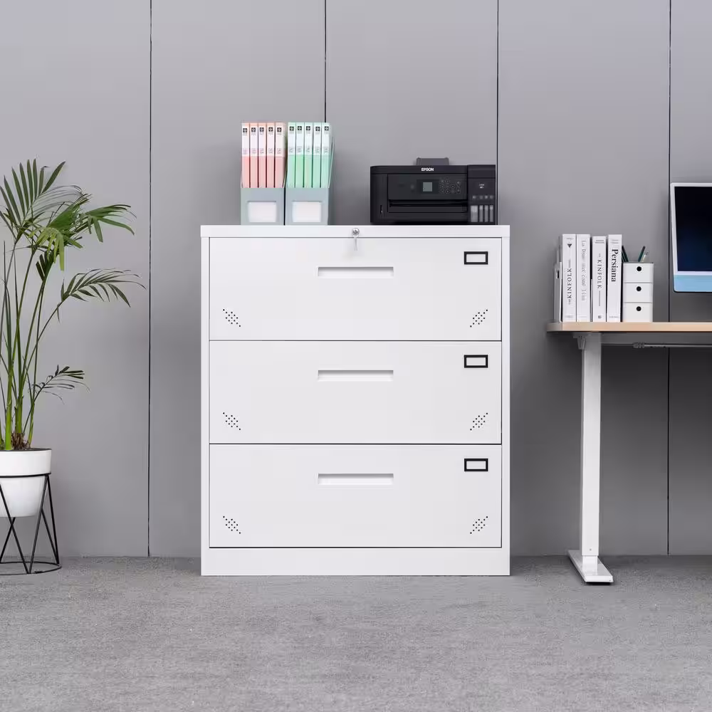 None 3-Drawer White 40 in. H x 35 in. W x 18 in. D Metal Steel Lateral File Cabinet for Legal/Letter A4 Size