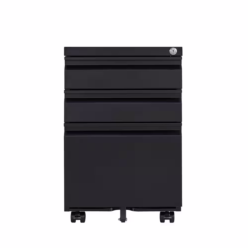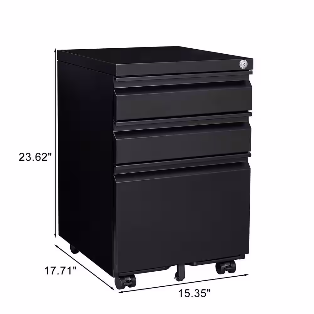 None Black 3-Drawer Mobile File Cabinet, Under Desk Metal Rolling Filing Cabinet with Lock for Legal/Letter/A4 File