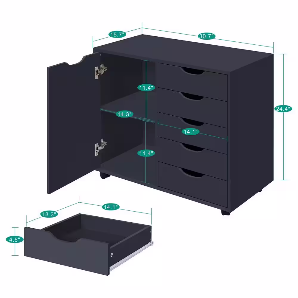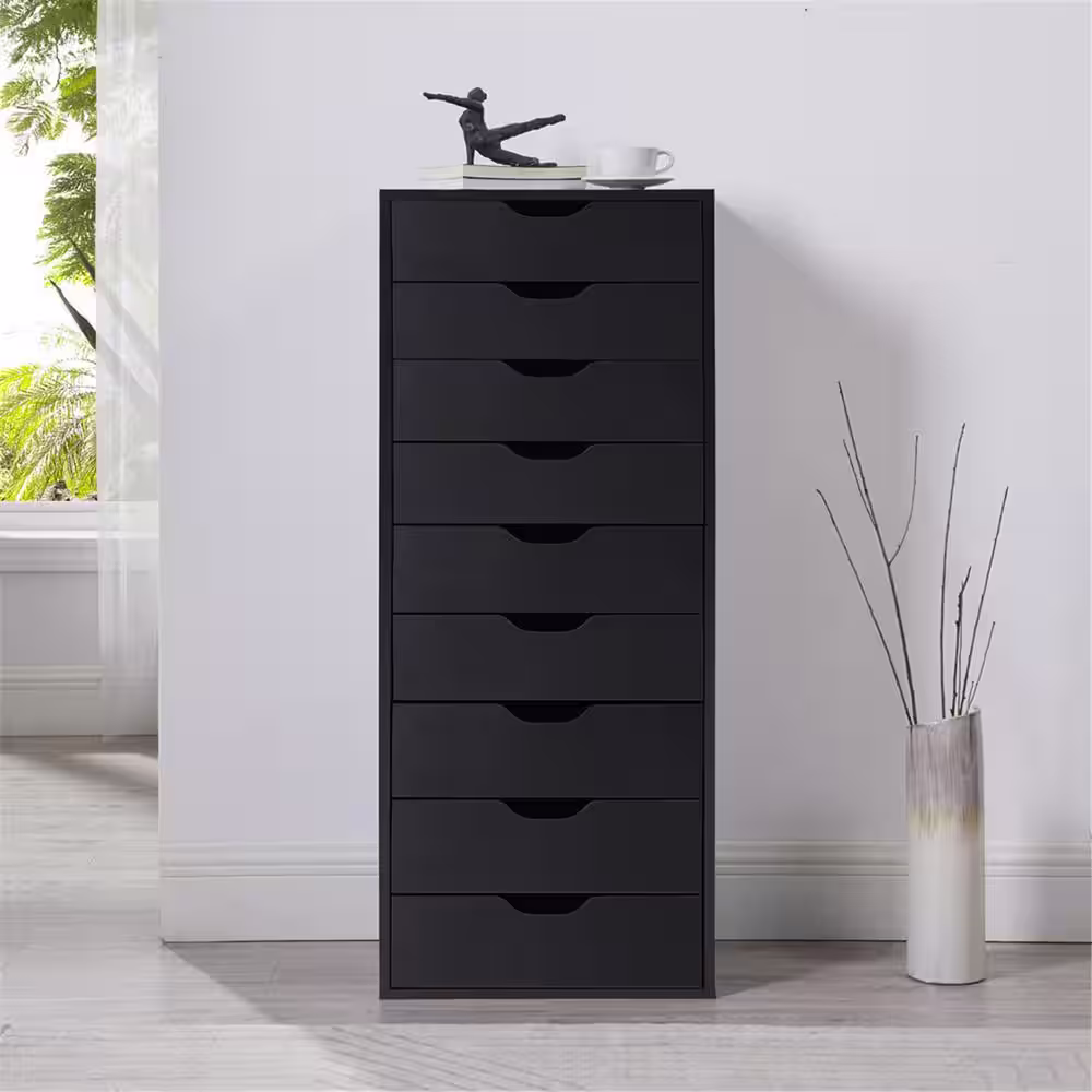 MAYKOOSH Black, 9-Drawer with Shelf, Office File Cabinets Wooden File Cabinets for Home Office Lateral File Cabinet