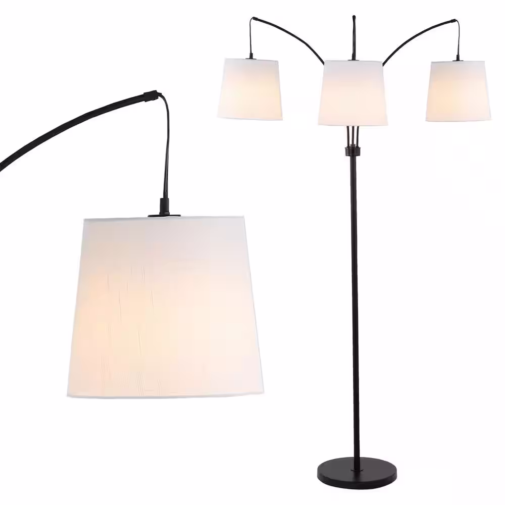 JONATHAN Y Sylva 72 .5 in. 3-Light Mid-Century Modern Head-Adjustable Iron LED Arc Floor Lamp, Black