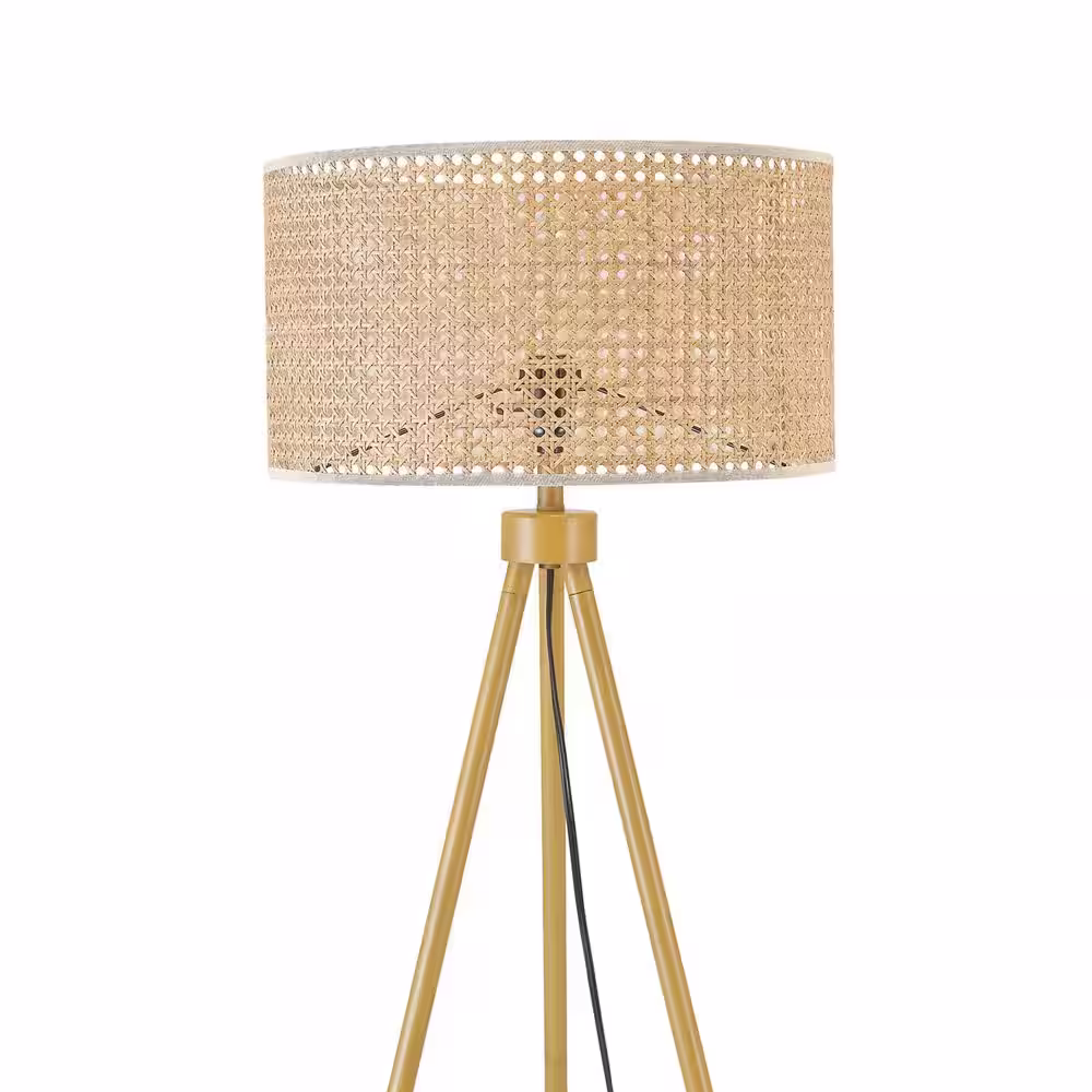 Globe Electric 60 in. Faux Wood Floor Lamp with Rattan Shade and Tripod Base, On/Off Rotary Switch on Socket