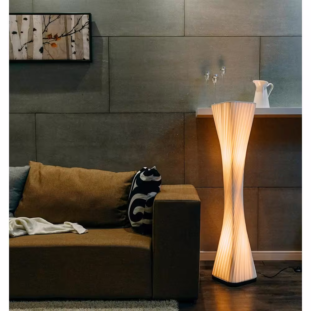 ORE International 72 in. Satin White Linea LED Adj Torchiere Floor Lamp