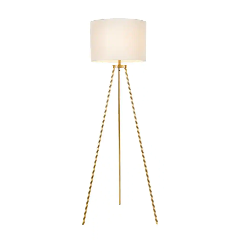 Hampton Bay Quinby 58 in. Gold Tripod Floor Lamp with White Fabric Shade