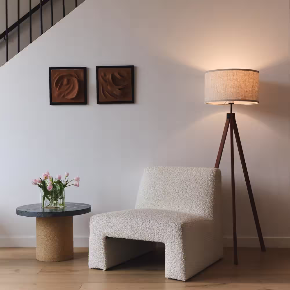 Brightech Eden 58 in. Havanah Brown Tripod Floor Lamp with Solid Wood Legs