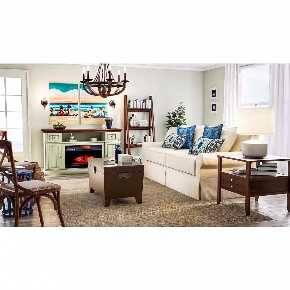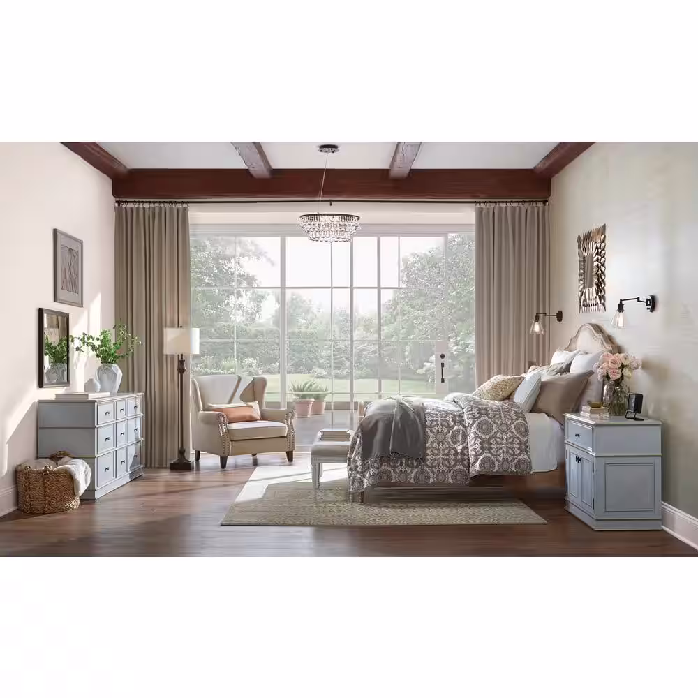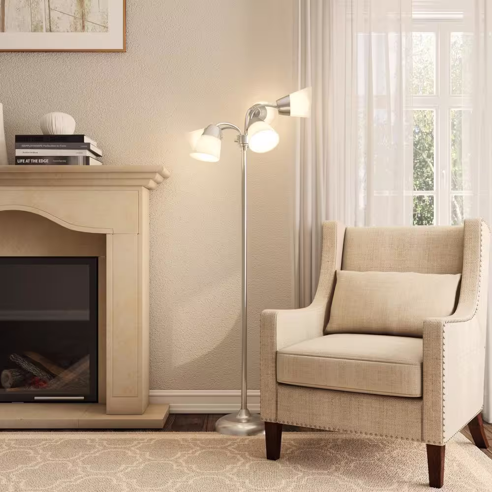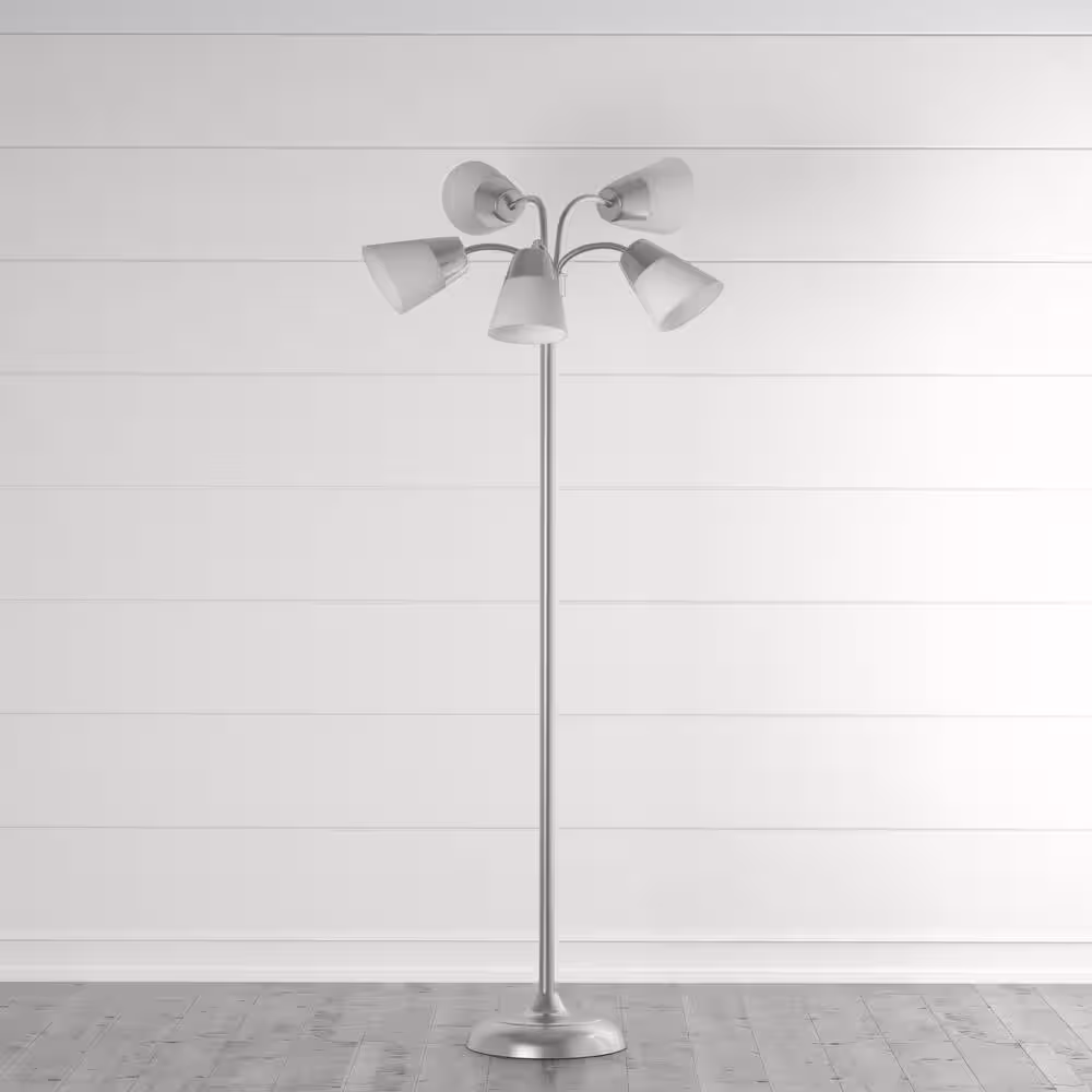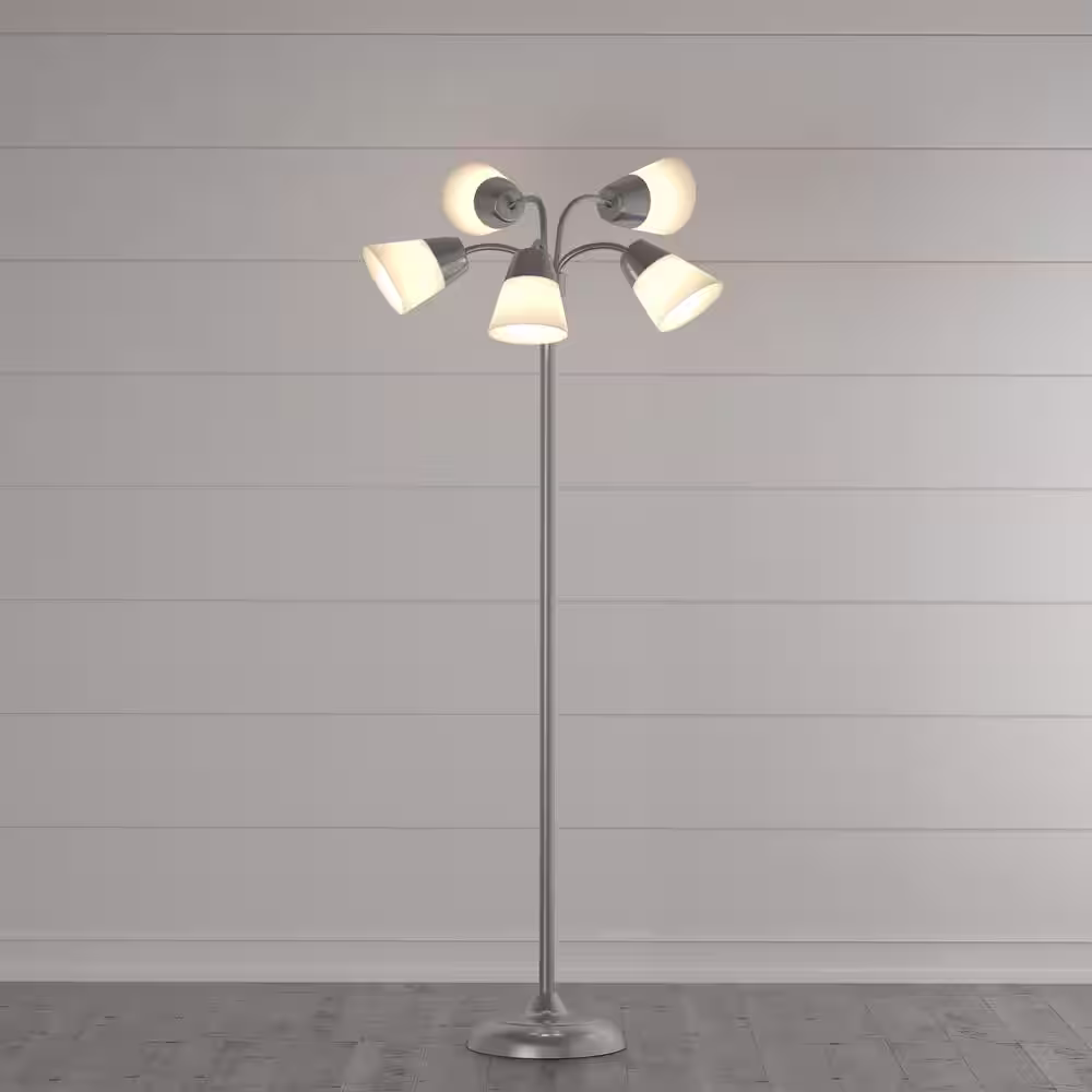 Hampton Bay Witherby 61 in. Shabby White Floor Lamp with Gray Lamp Shade