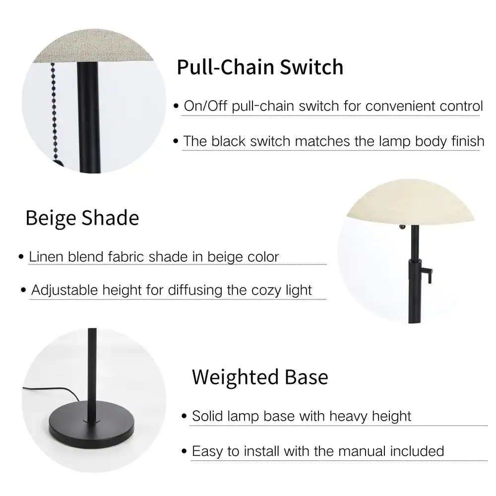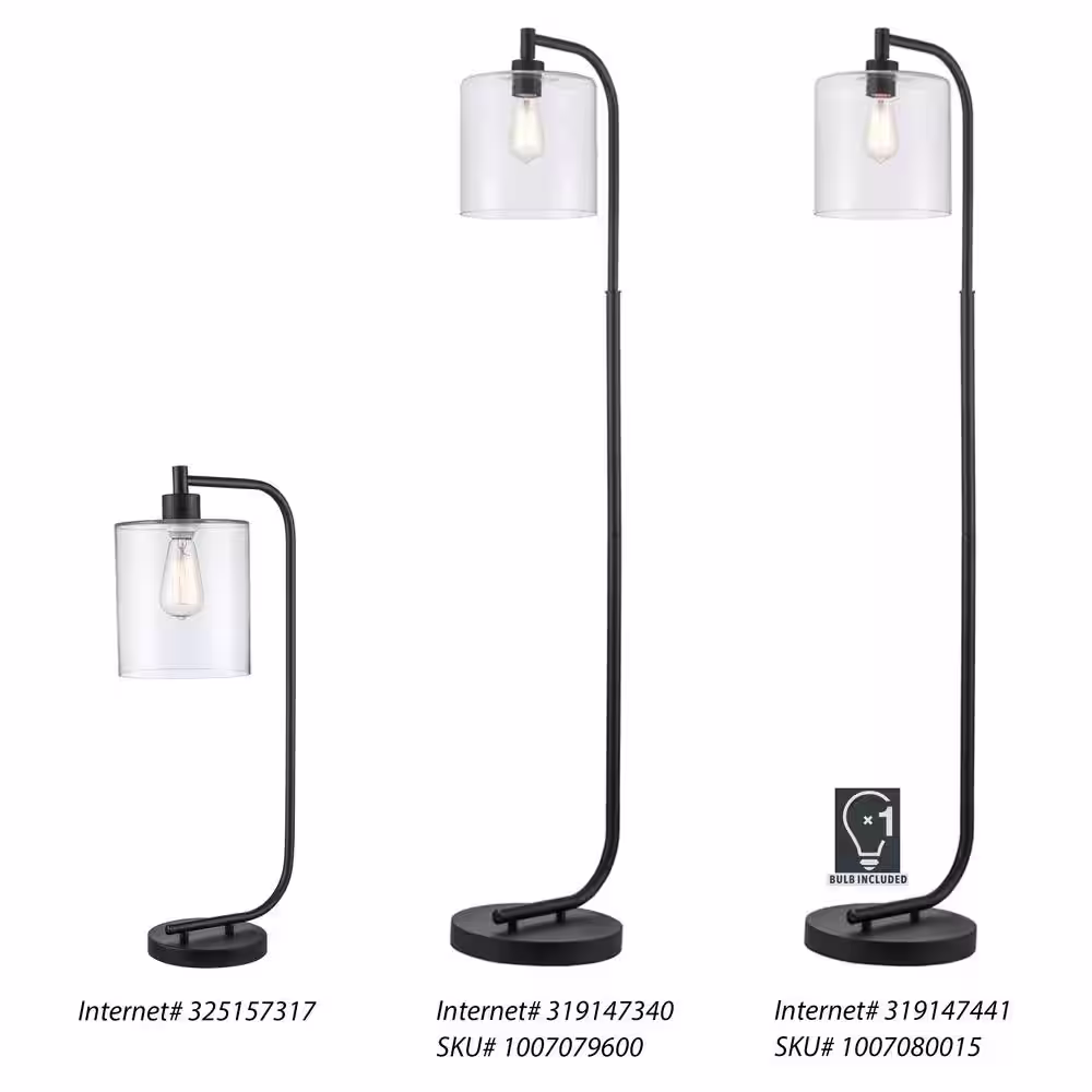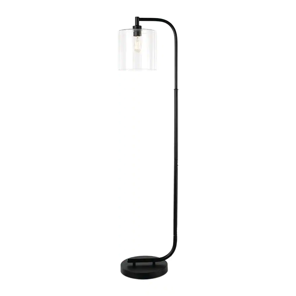 Hampton Bay Cline 62.5 in. 1-Light Black Floor Lamp with Clear Glass Lamp Shade