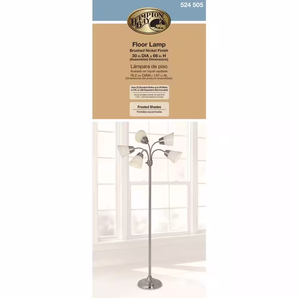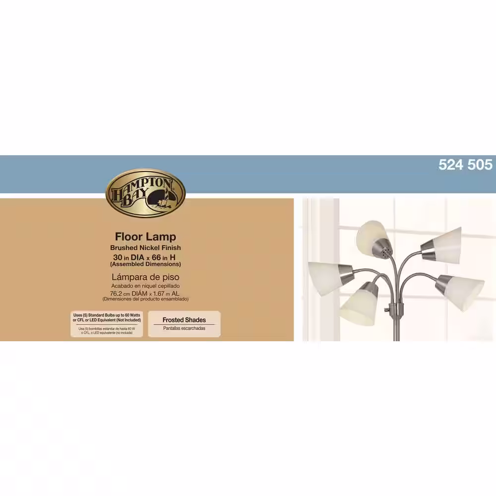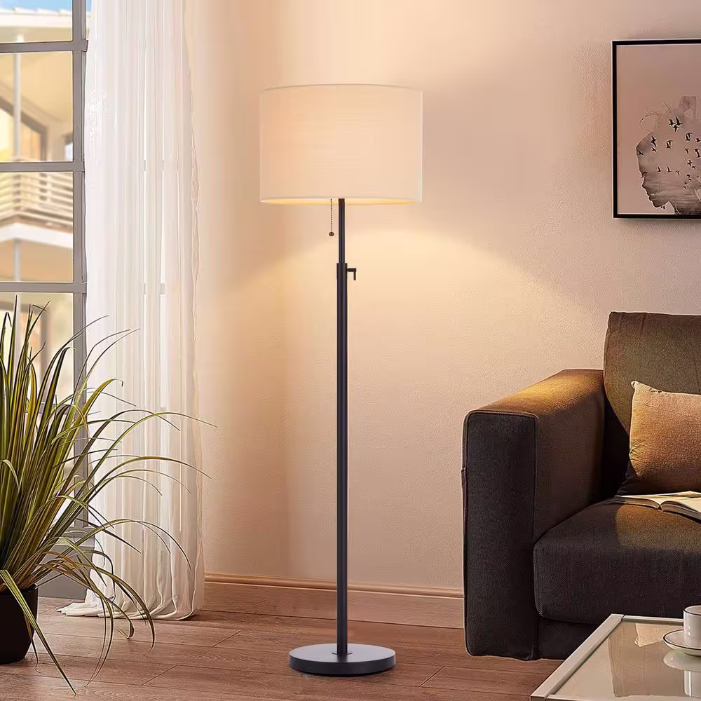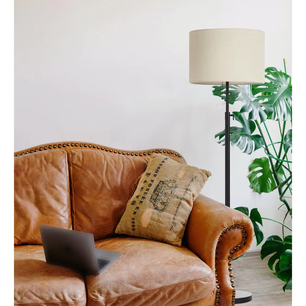 Hampton Bay Rhodes 58.50 in. Bronze Floor Lamp with Natural Linen Shade