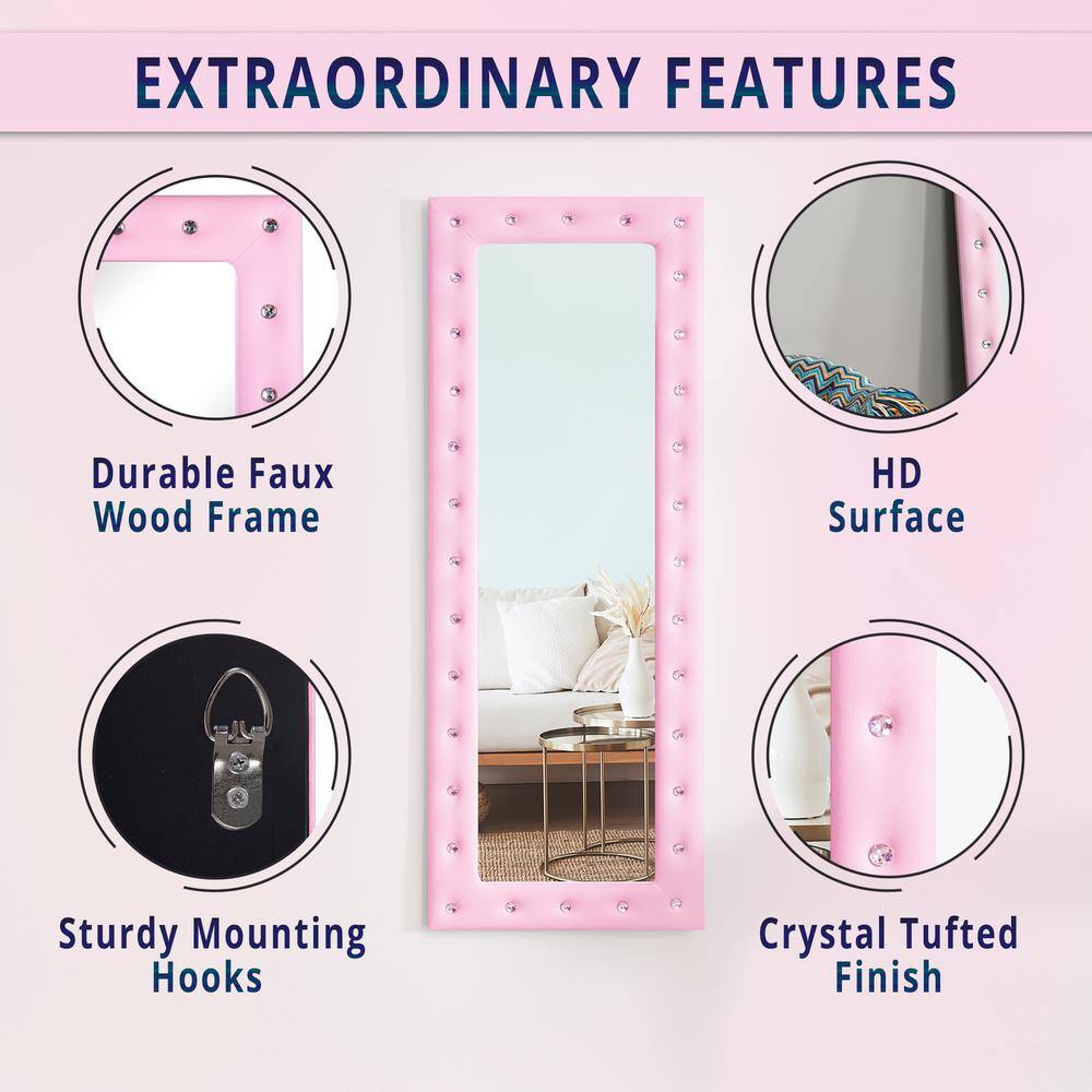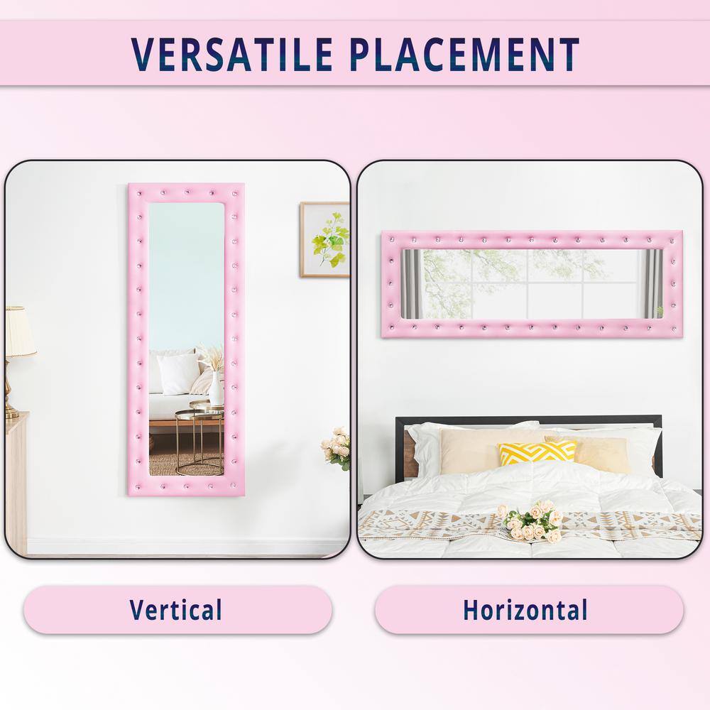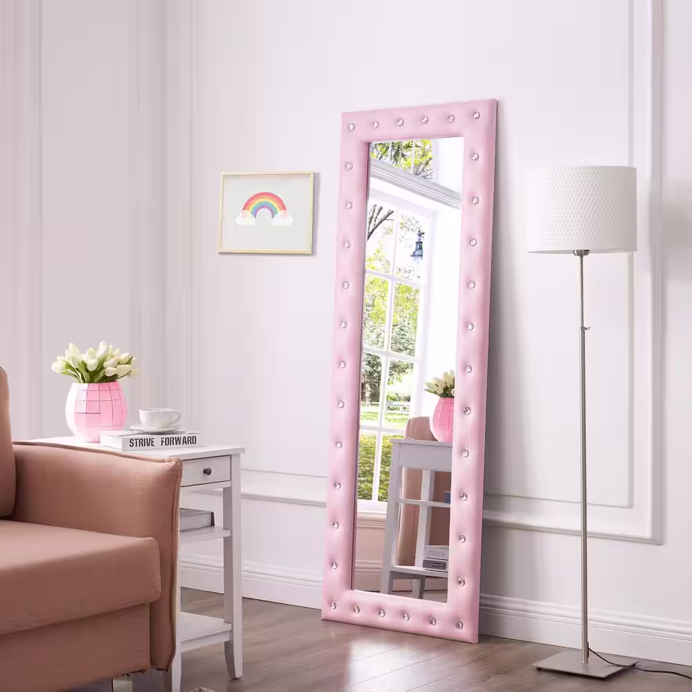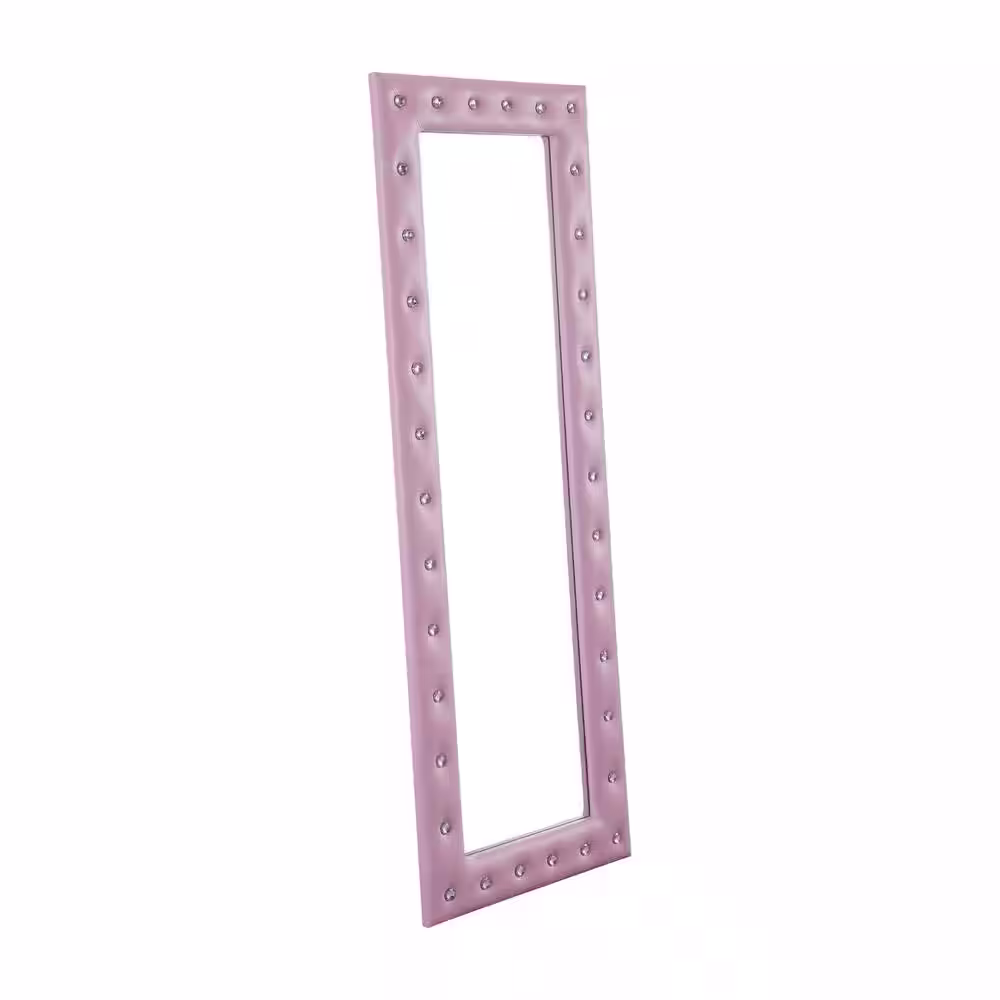 HOMESTOCK 22 in. W x 63 in. H Modern Crystal Tufted Rectangle Framed Pink Leaning Mirror