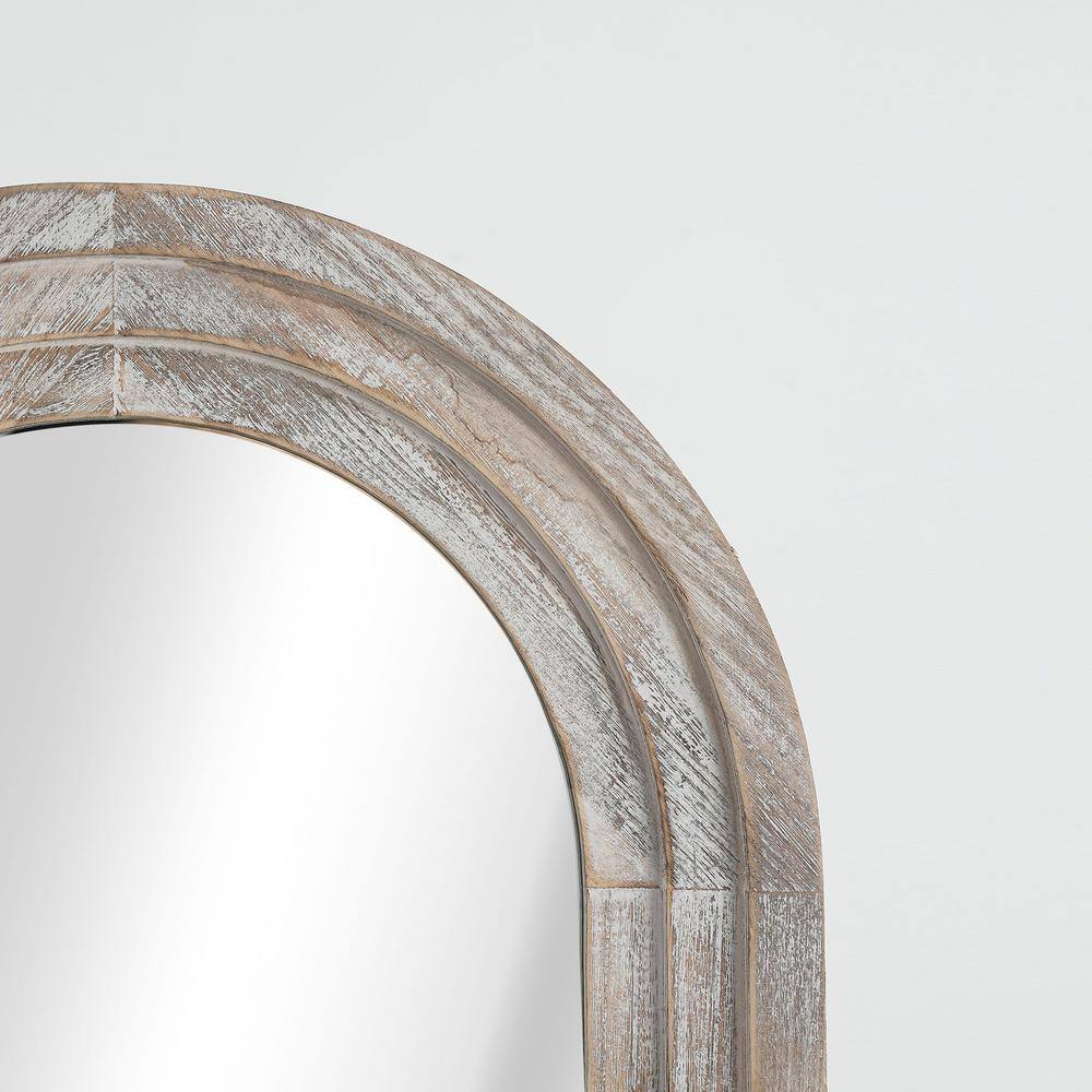 None 64 in. x 21 in. Rustic Arch Solid Wood Framed Steps White Full Length Leaning Mirror
