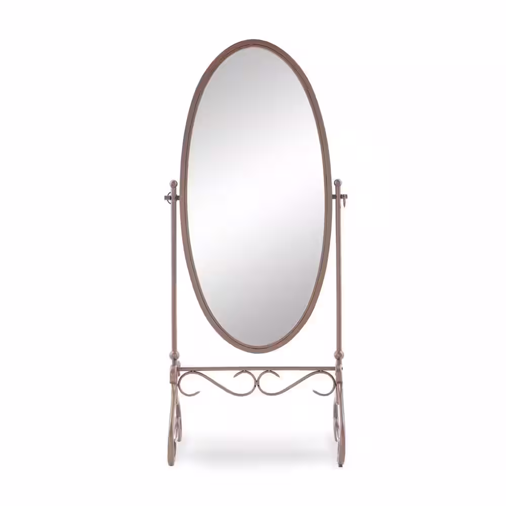 Linon Home Decor Clarisse 27.9 in. W x 63 in. H Modern Cheval Oval Framed Sleek Metal Dark Bronze Mirror