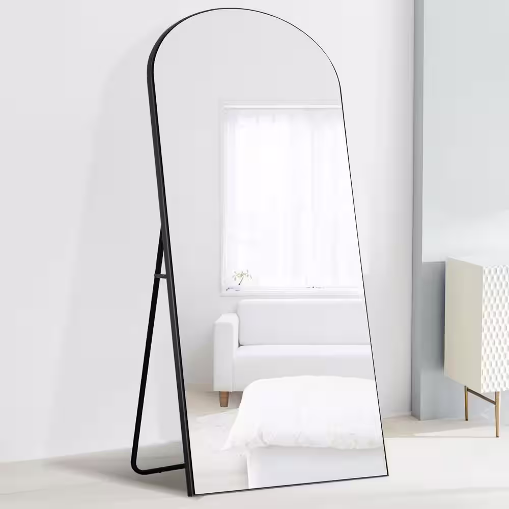 None 29 in. W x 68 in. H Retro Arched Metal Framed Full-Length Leaning Mirror