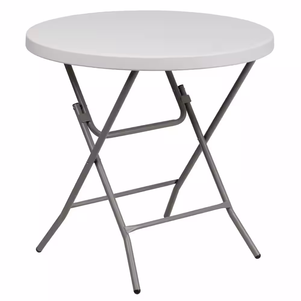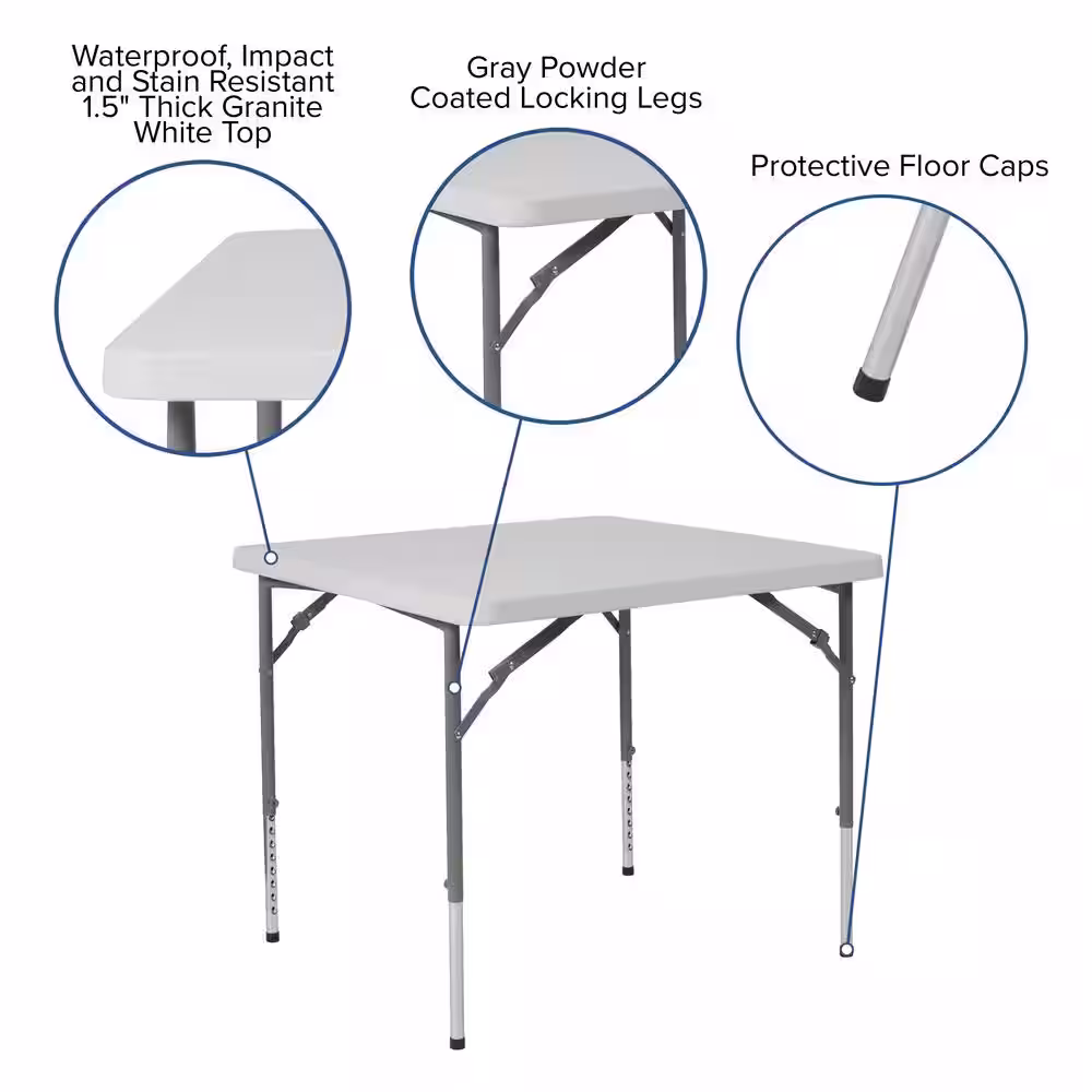 None 33.5 in. Granite White Plastic Tabletop Metal Frame Folding Table