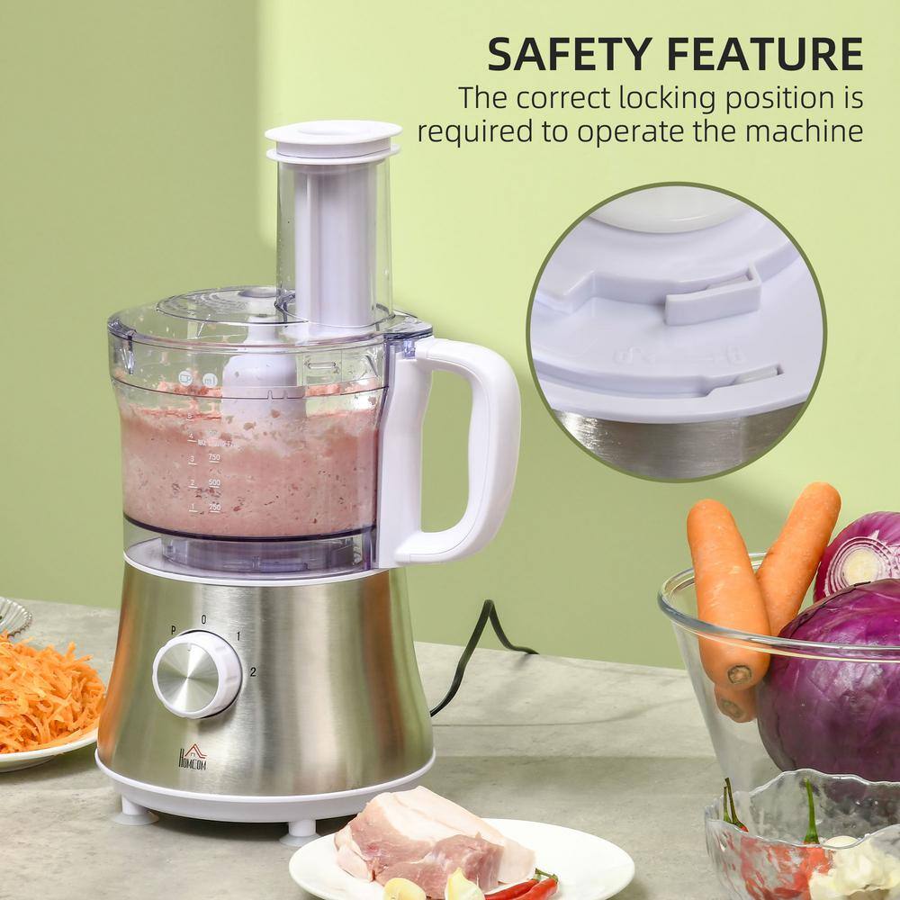 HOMCOM Adjustable Speed 5-Cup Food Processor with Processor Bowl, 1.5L Blender Jug, 3 Blades
