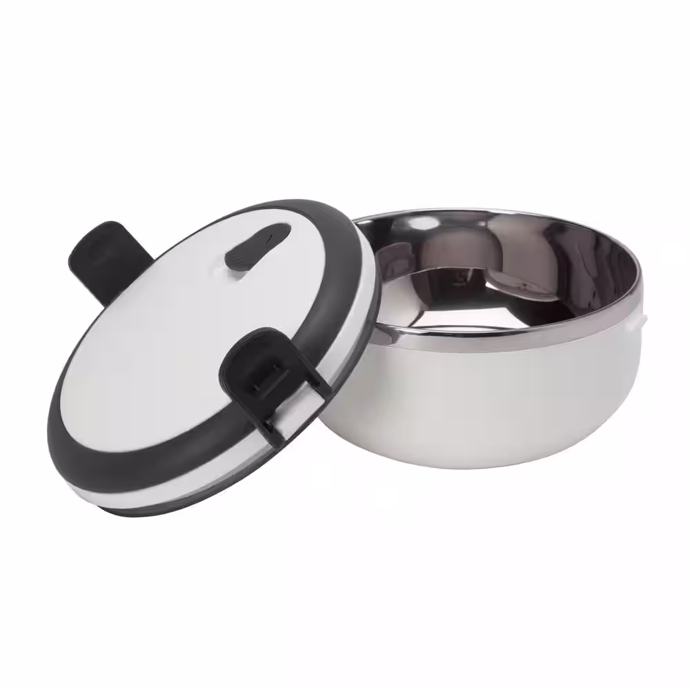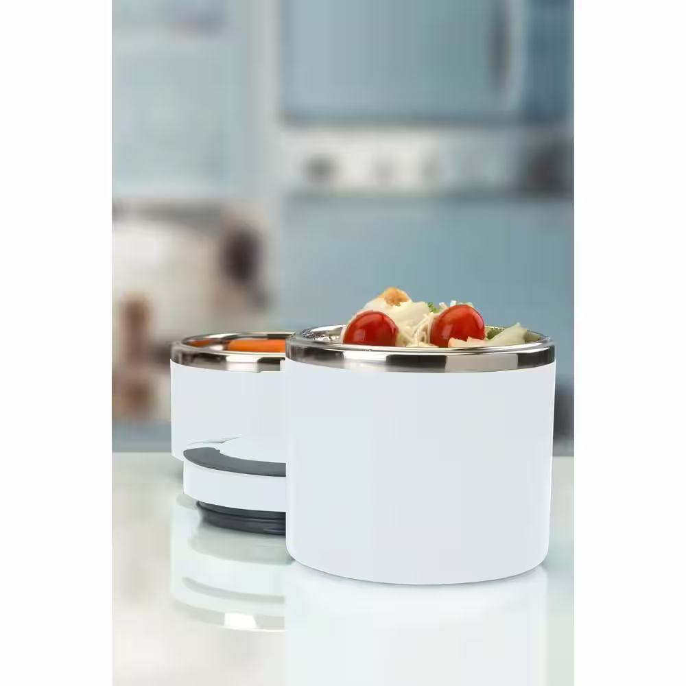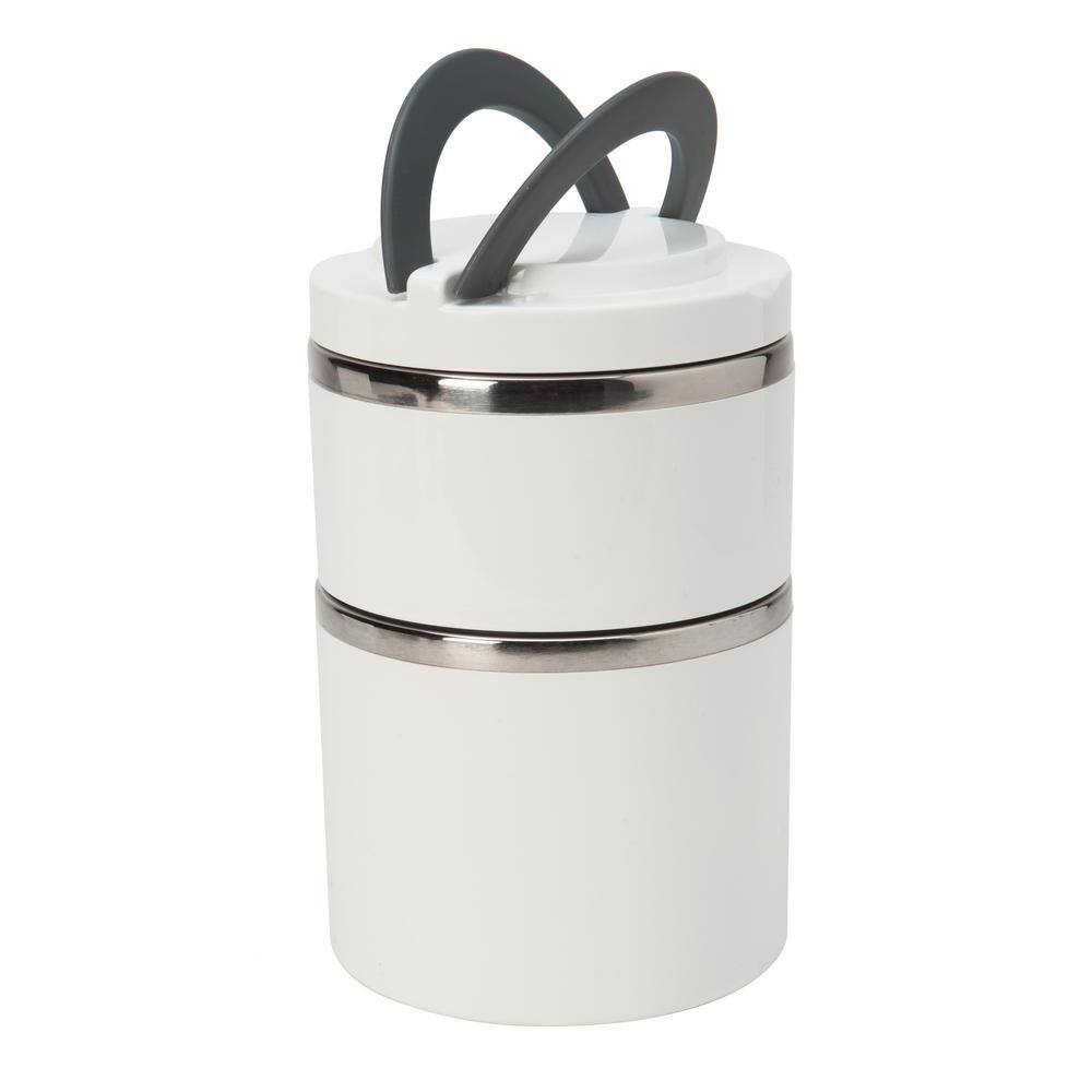Kitchen Details 3-Piece Round Twist Stainless Steel 2-Tier White Lunch Box