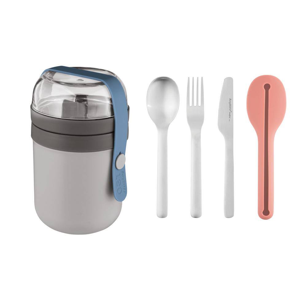 BergHOFF Grey and Green Water Bottle Flatware and Bento Box Leo Lunch Set
