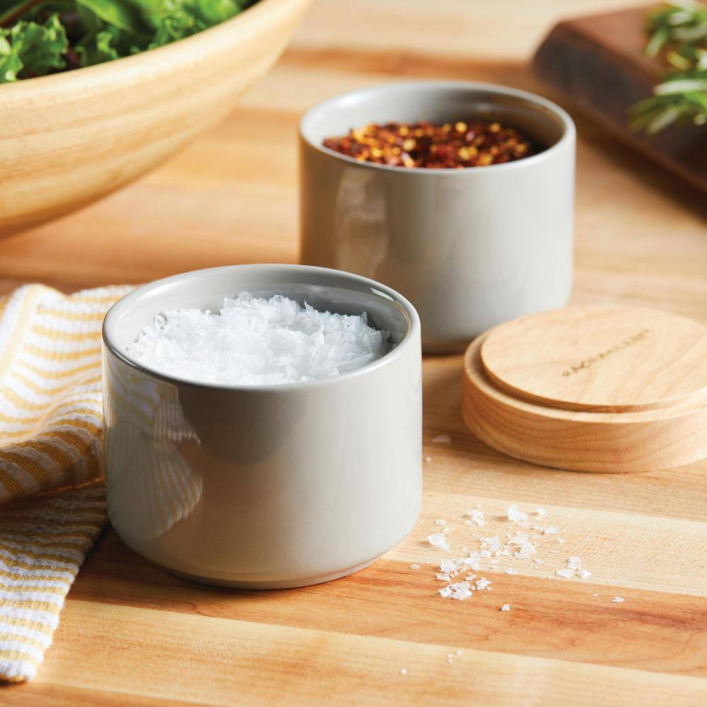 Rachael Ray Ceramic Stacking Spice Box Set with Lid, 2-Piece, Light Gray