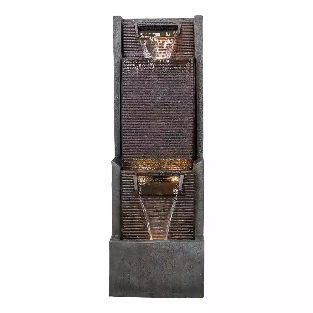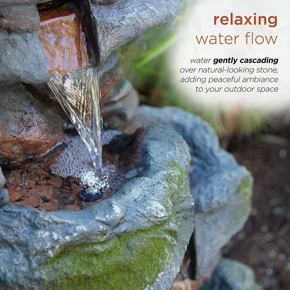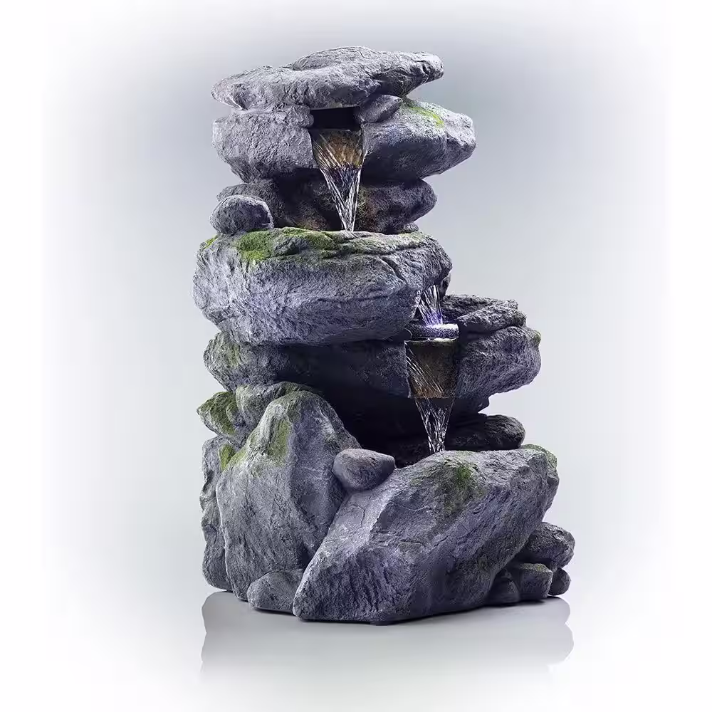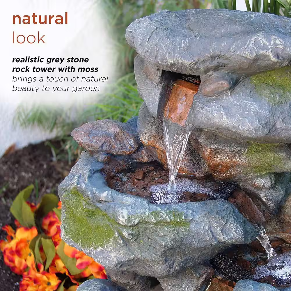 None 22 in. Glass Fiber Polygen High Outdoor 3-Layer Rock Waterfall Fountain-Gray/Beige Color