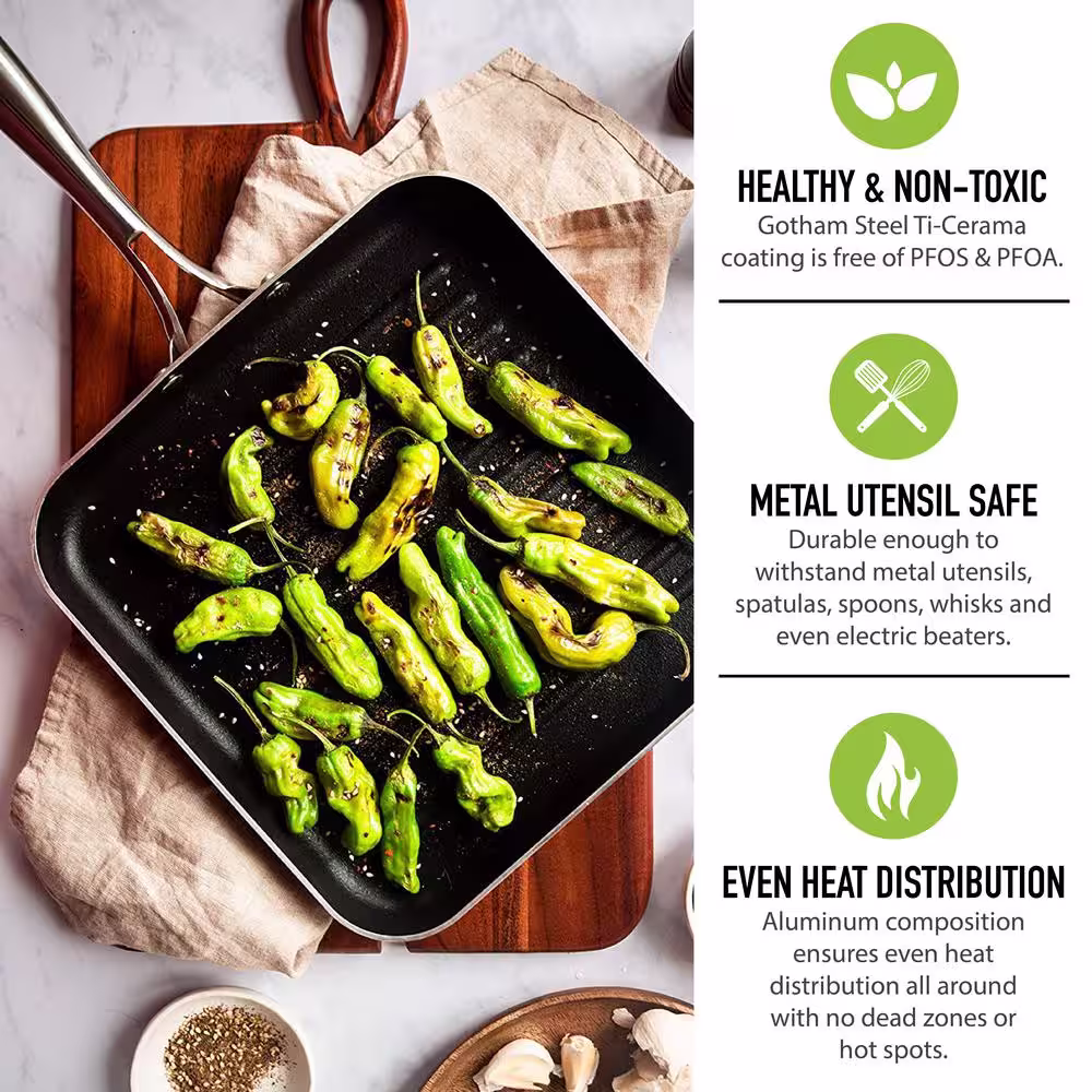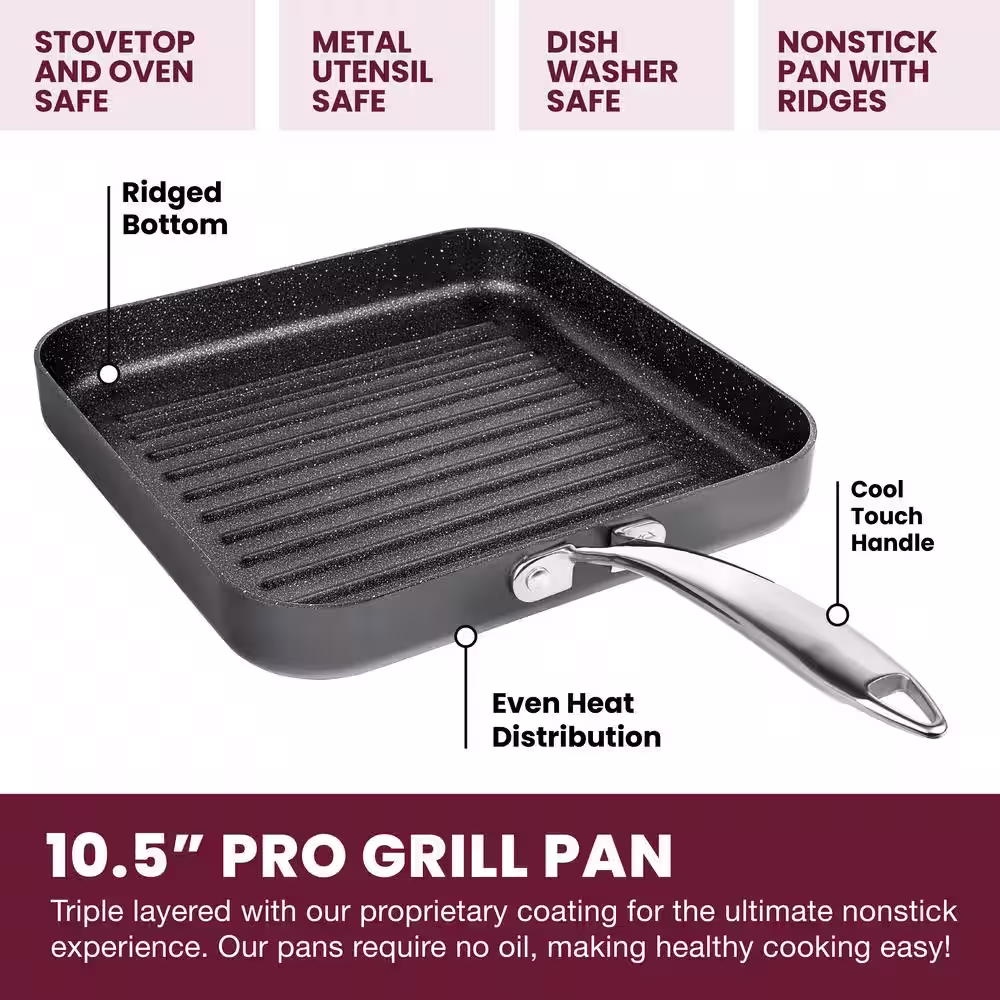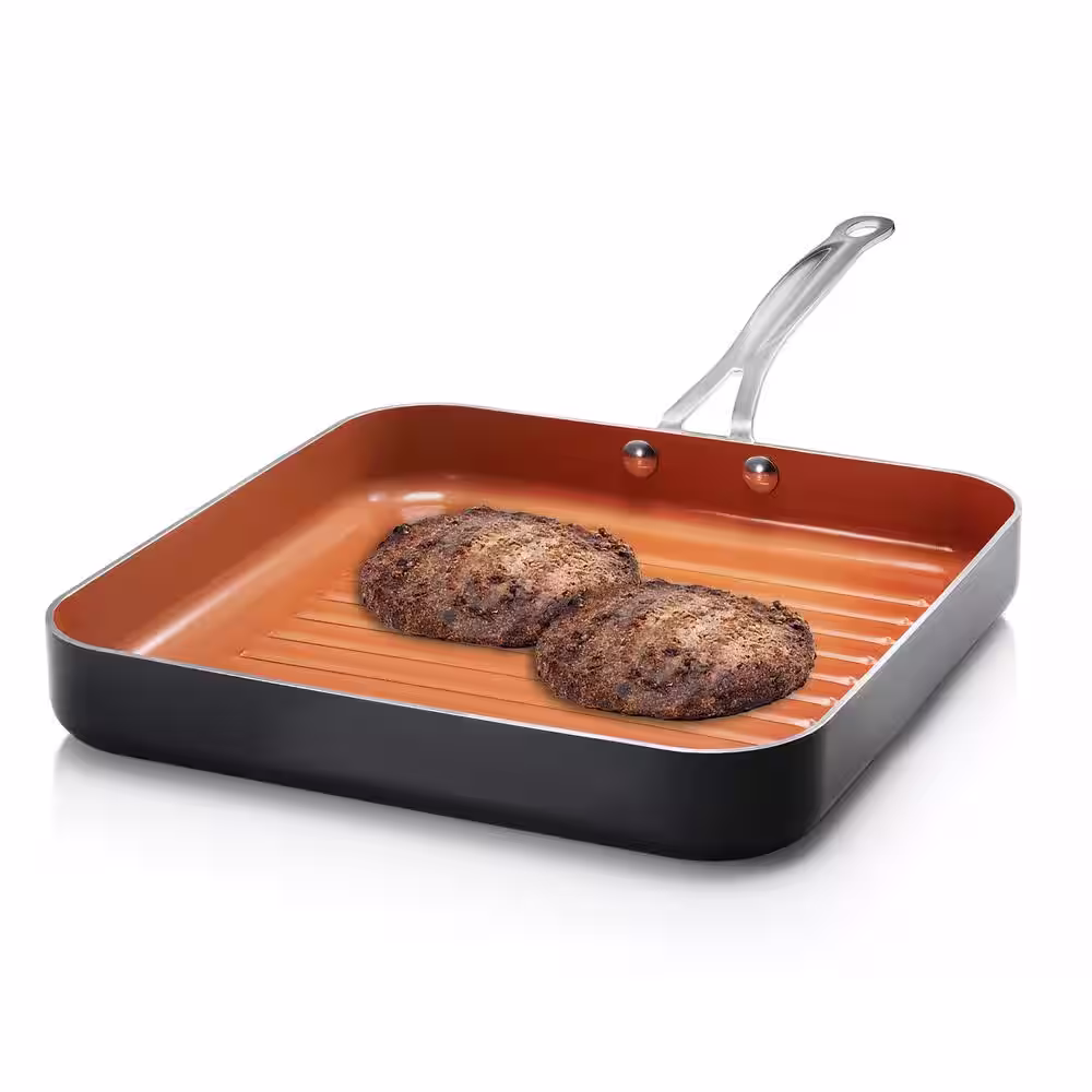 Gotham Steel 10.5 in. Copper Cast Textured Surface Aluminum Non-Stick Grill Pan