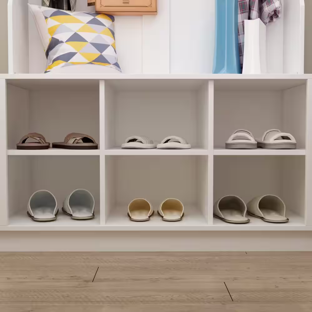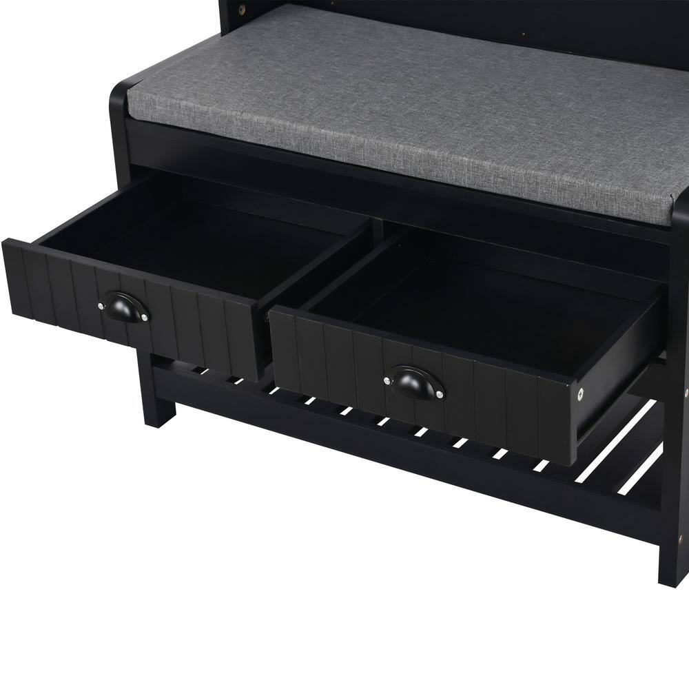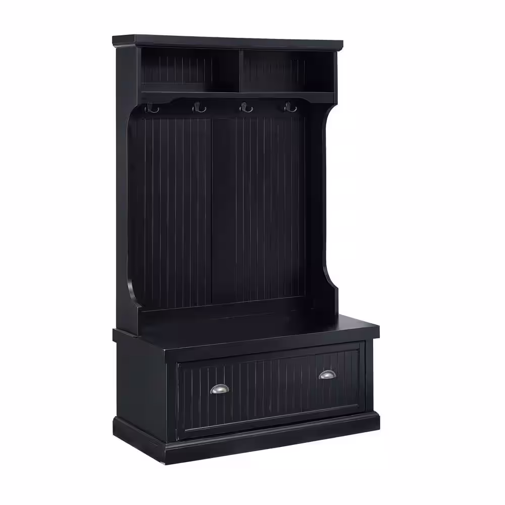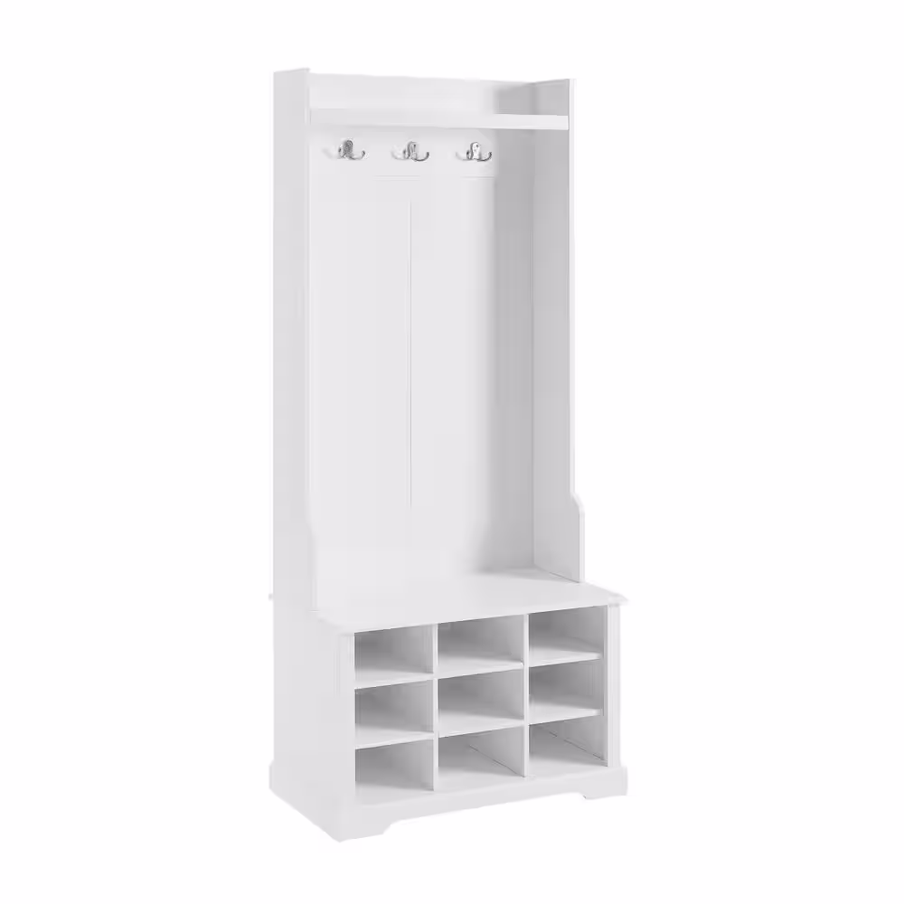 None Howard Coffee Wood 32 in. Shoe Rack with Coat Hooks, Hall Tree with Shoe Bench and Shelves