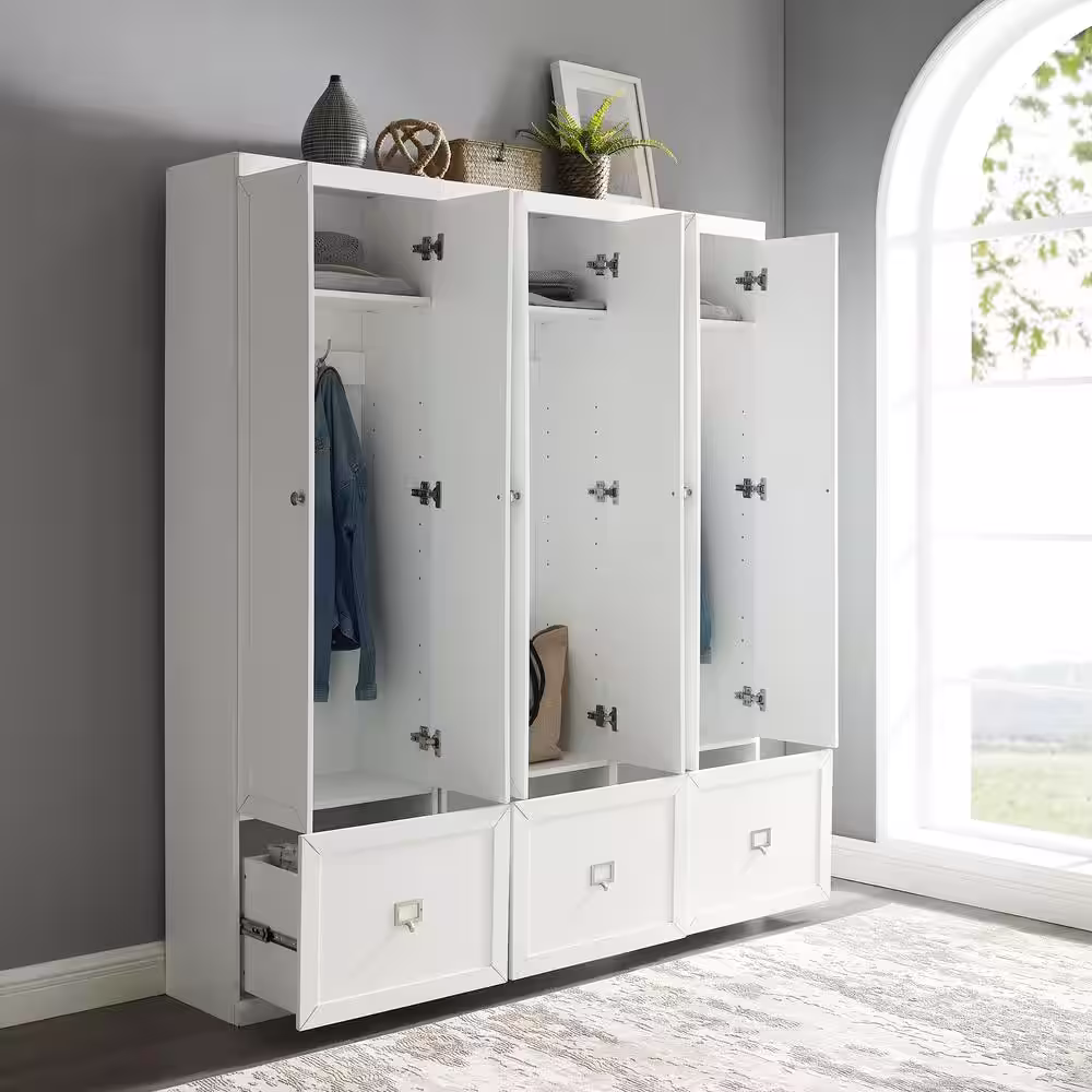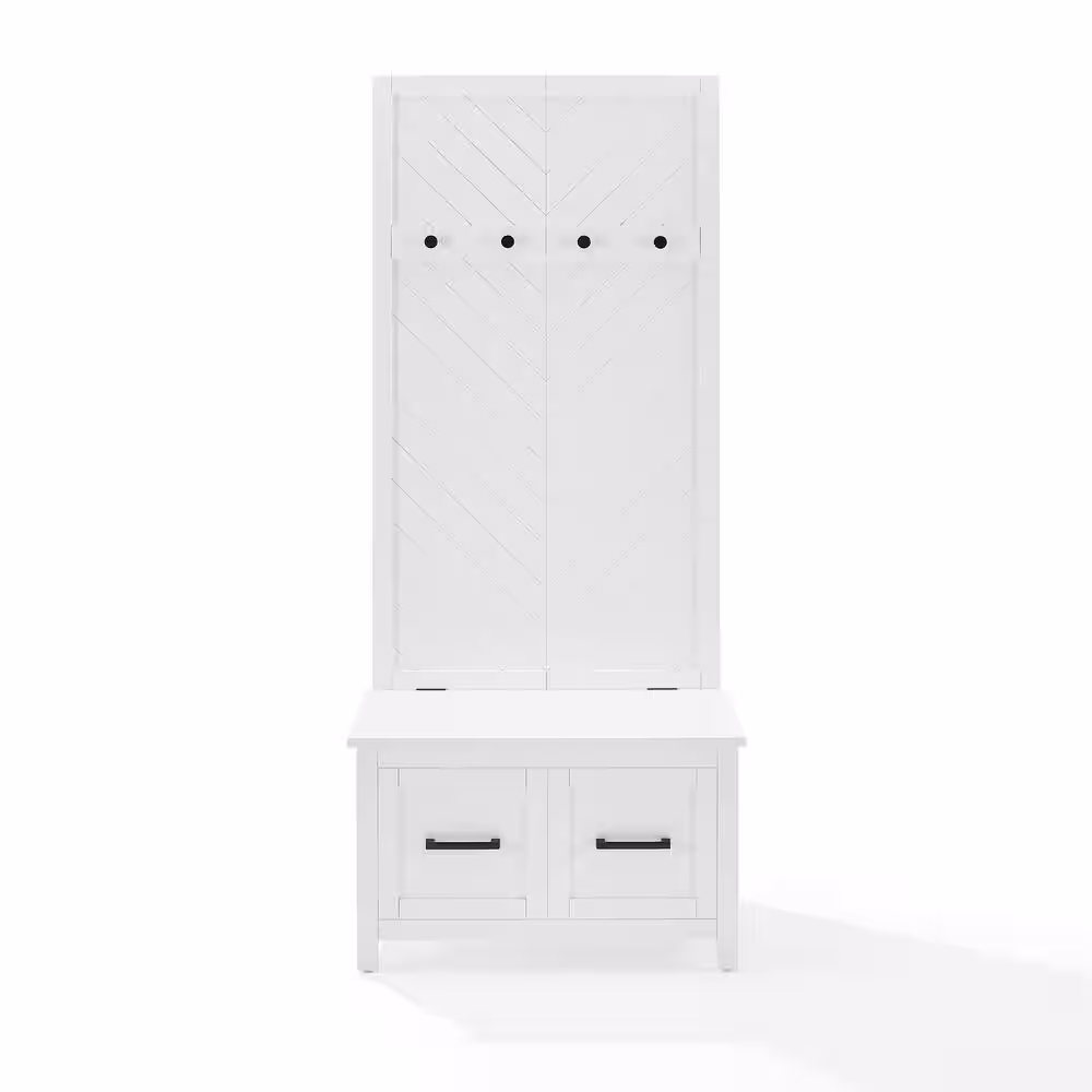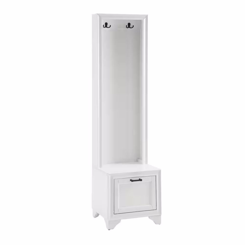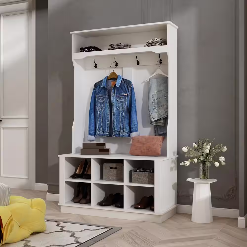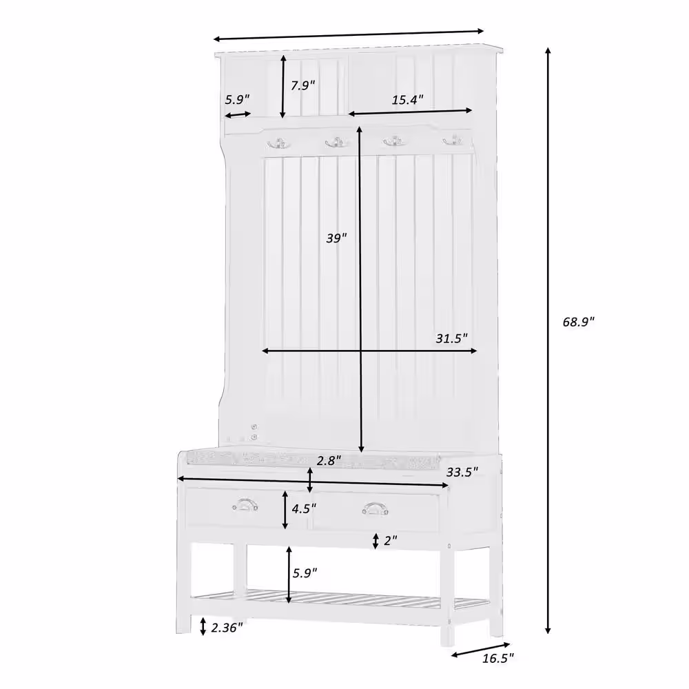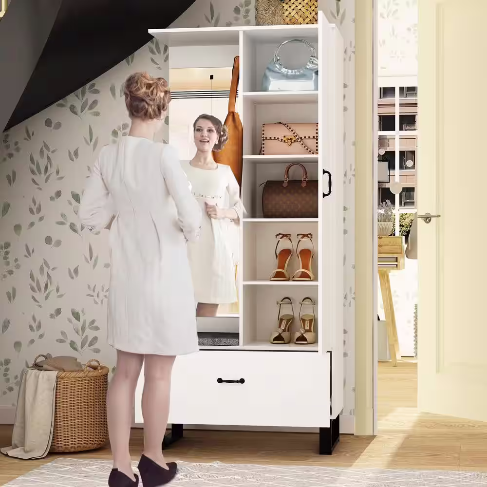 None 70.9 in. H Wood Hall Trees Coat Rack in White With Full-length Mirror Bench Bag Shoe Storage Double Hooks Drawer