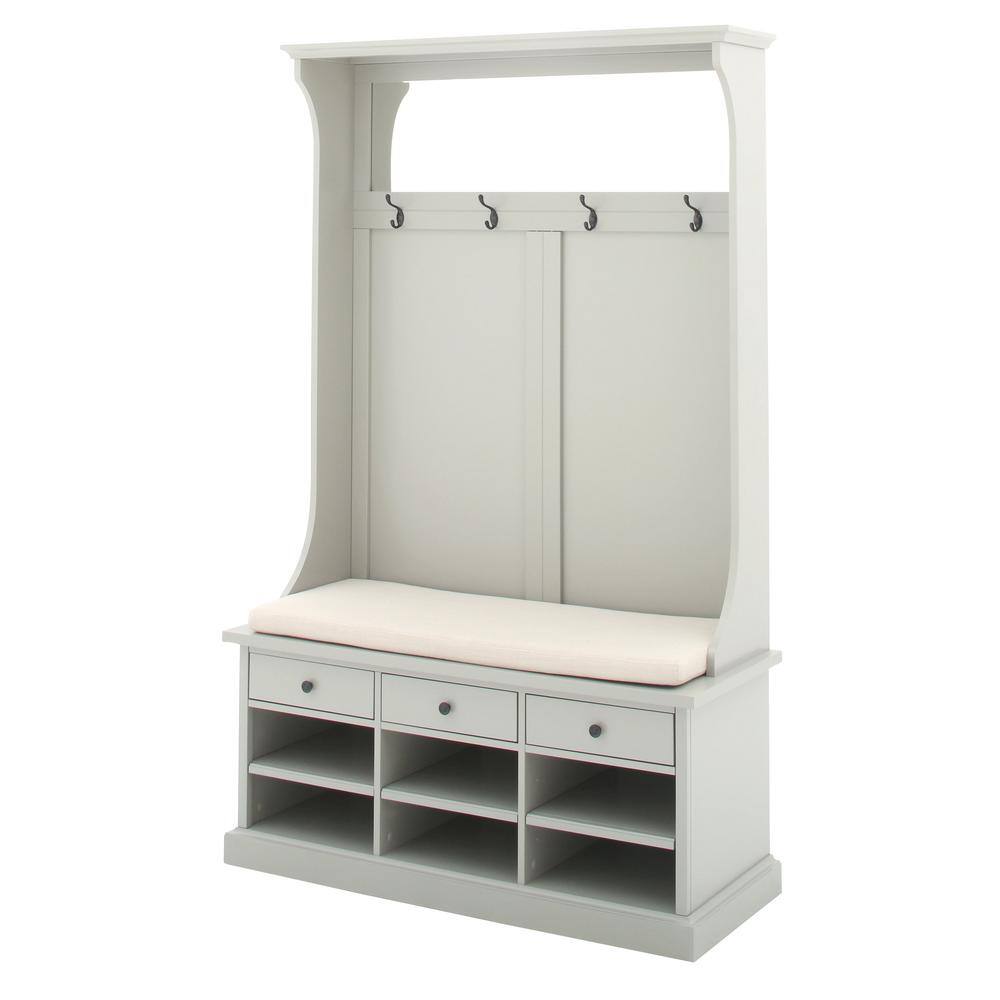 None Carmalita White and Brown Hall Tree with Shoe Cubby and Coat Rack, Shoe Rack Bench with Wall Mounted Shelf and Hooks