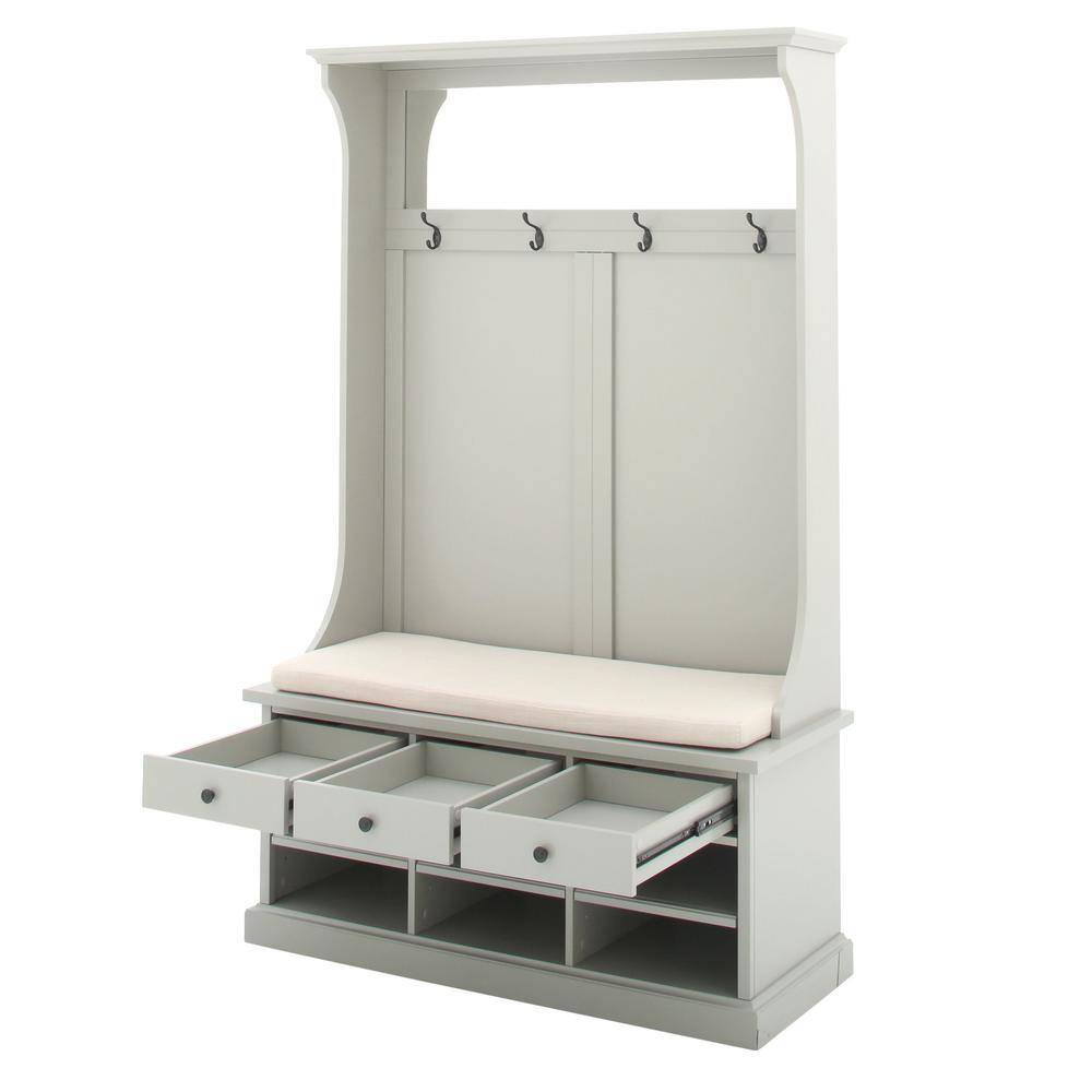 None 68.5 in. White Wood 3-in-1 Hall Tree Coat Rack Storage Bench with 7-Metal Double Hooks and Shelves