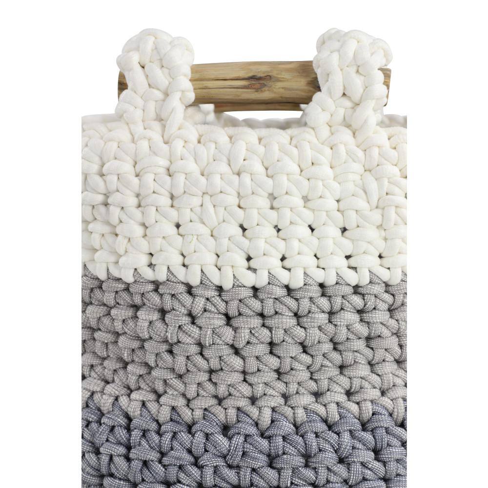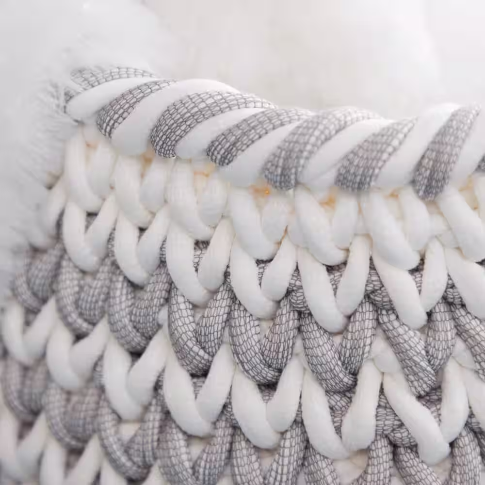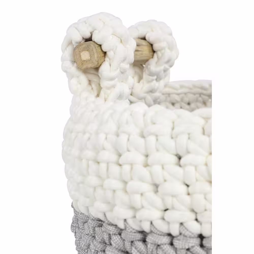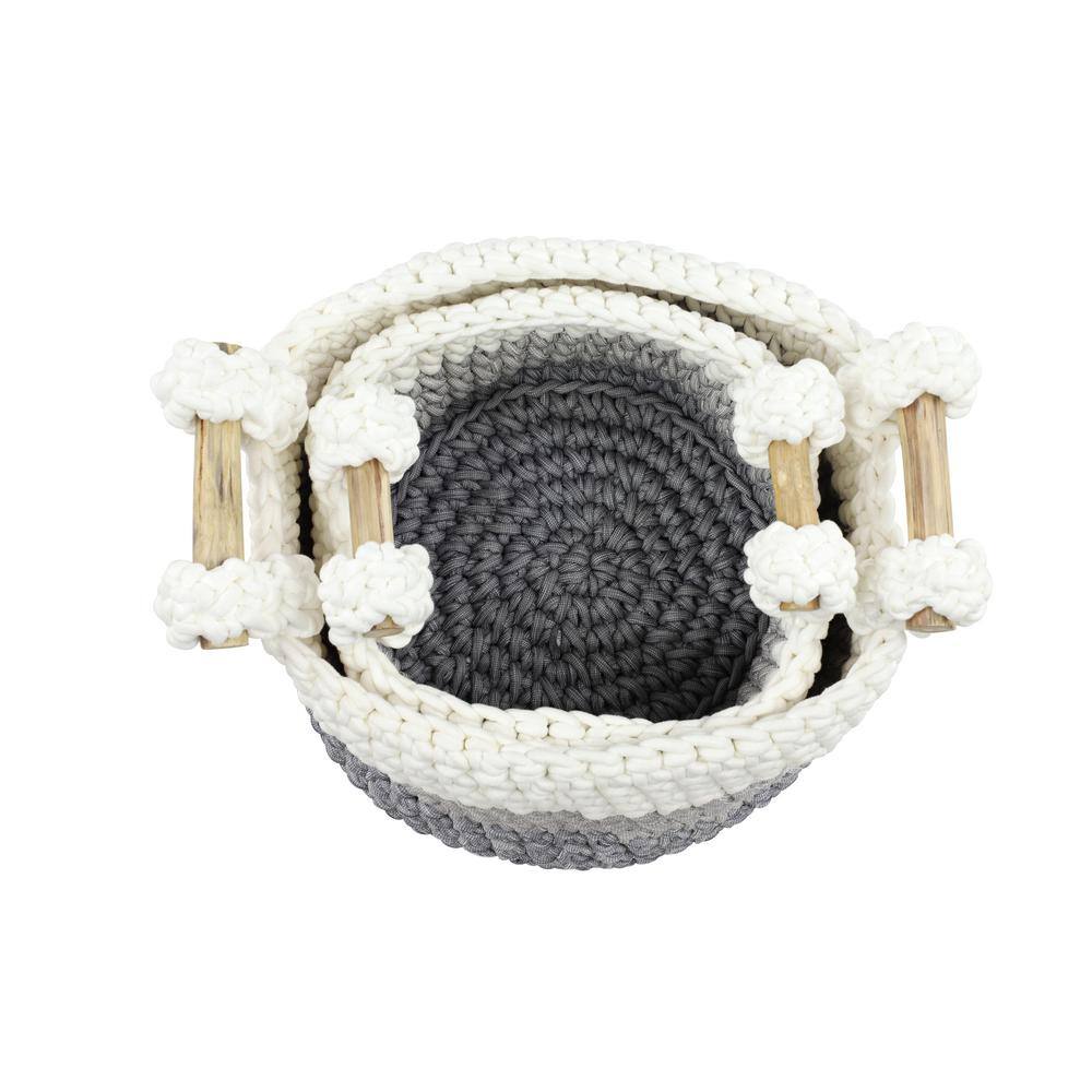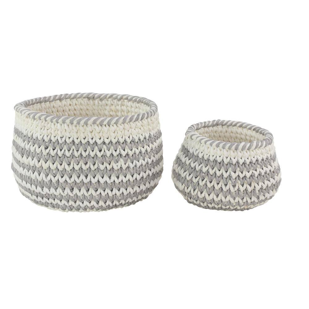 Litton Lane Round Chevron-Patterned Gray Mesh and White Cotton Rope Baskets with No Handles (Set of 2)