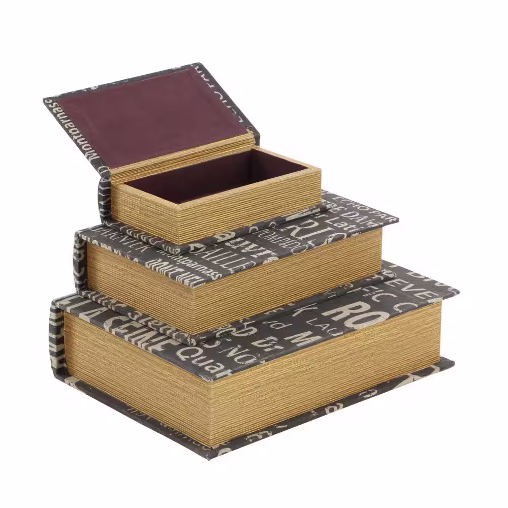 Litton Lane Rectangle Wood Faux Book Box with Varying Patterns (Set of 3)