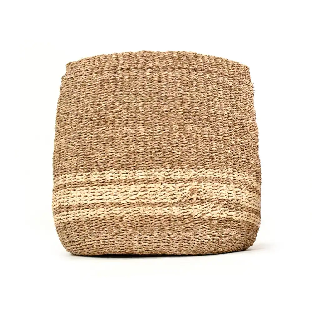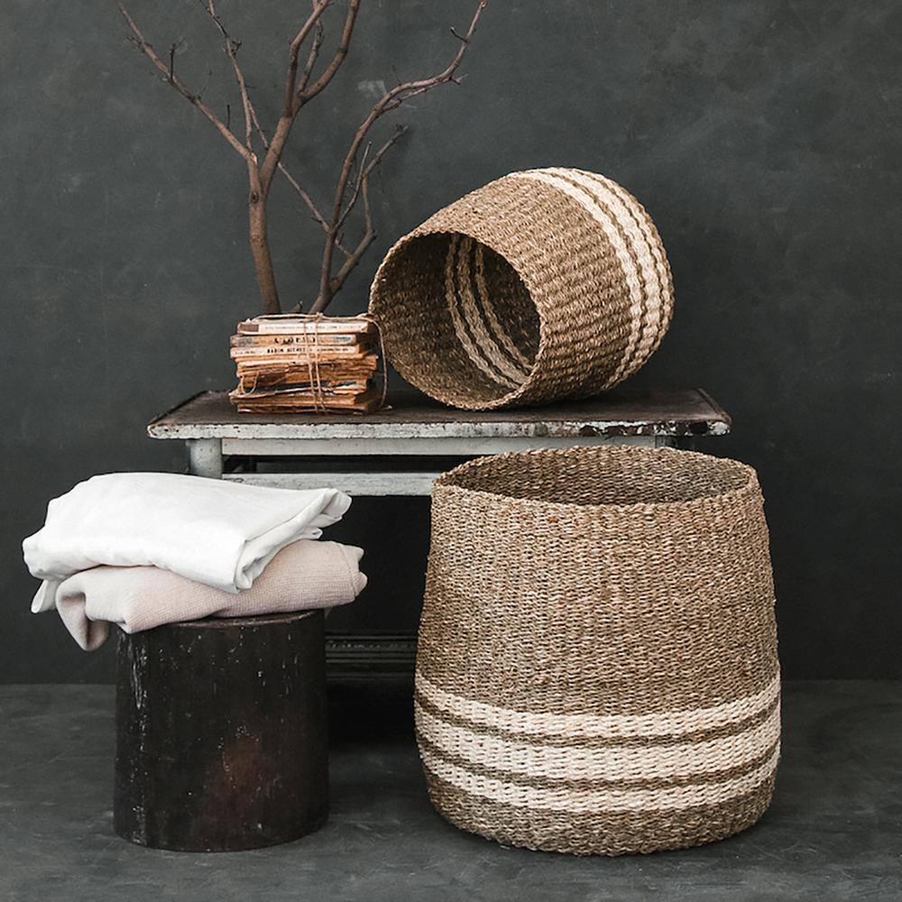 Zentique Concave Hand Woven Wicker Seagrass and Palm Leaf with Dark Pin Stripes Large Basket