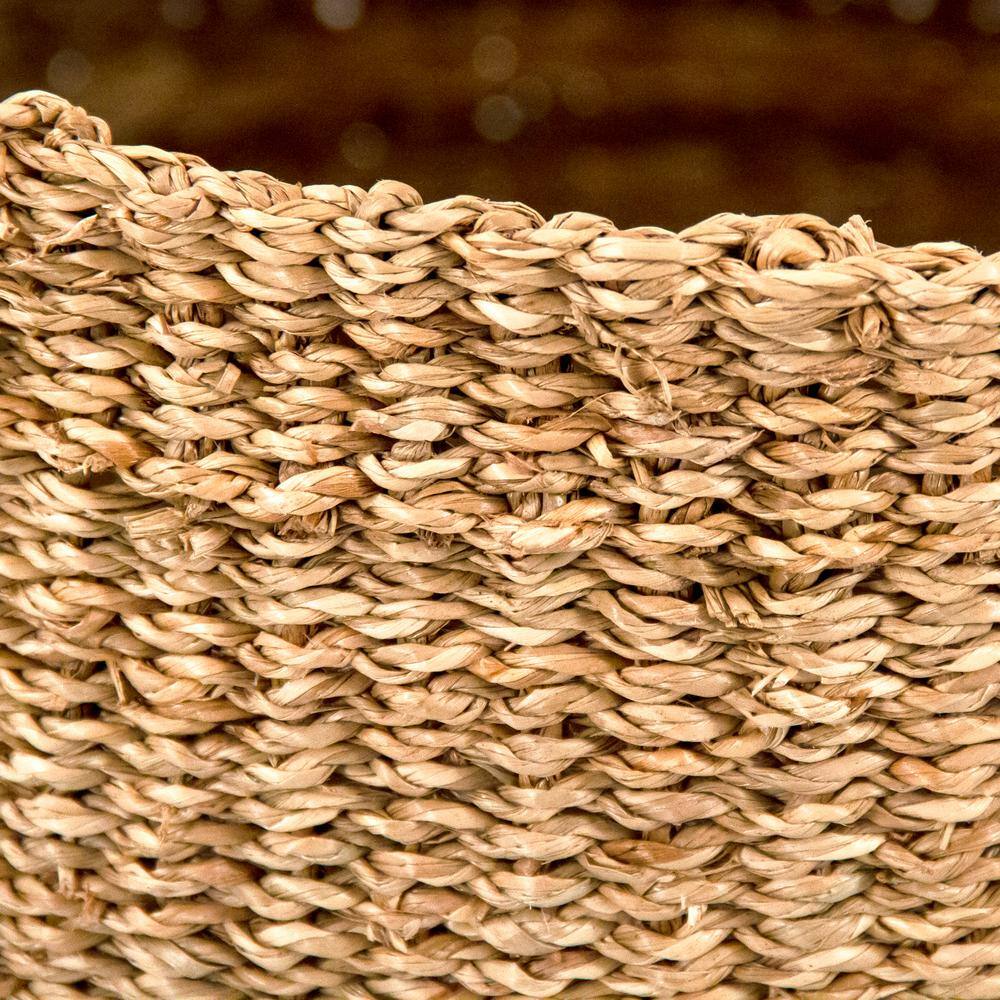 Zentique Hand Woven Wicker Seagrass and Palm Leaf Large Basket with Dark Stripes and Handles