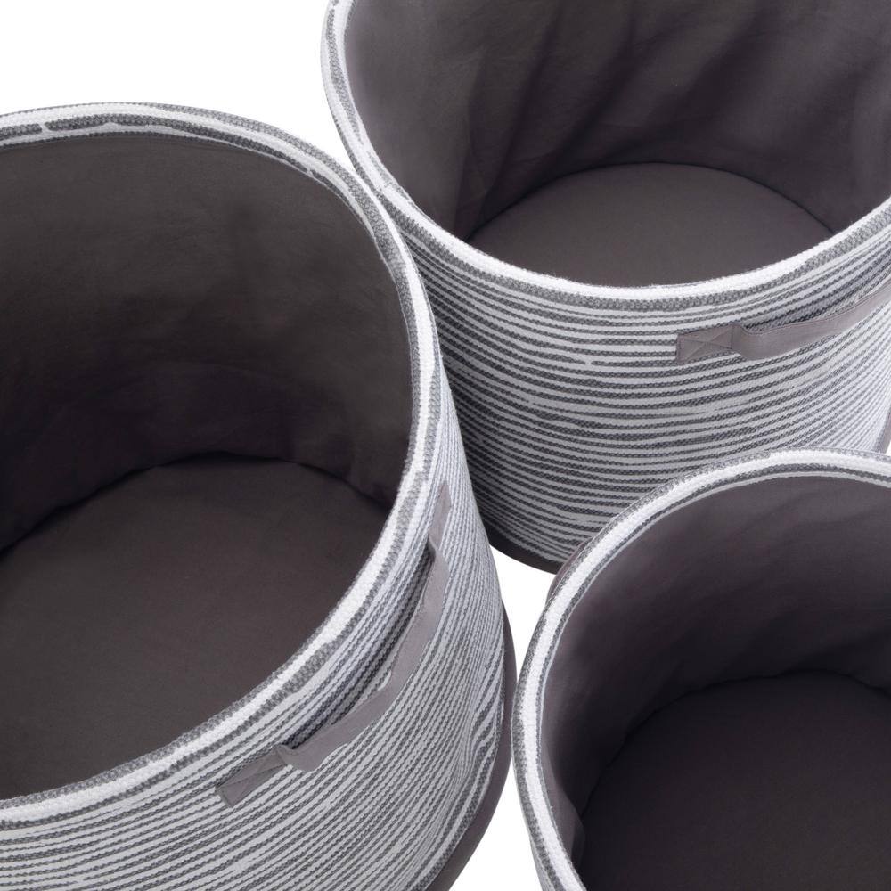 Simpli Home Kelton Transitional 3-Piece Nesting Storage Basket Set in Grey,White Multi Braided Fabric