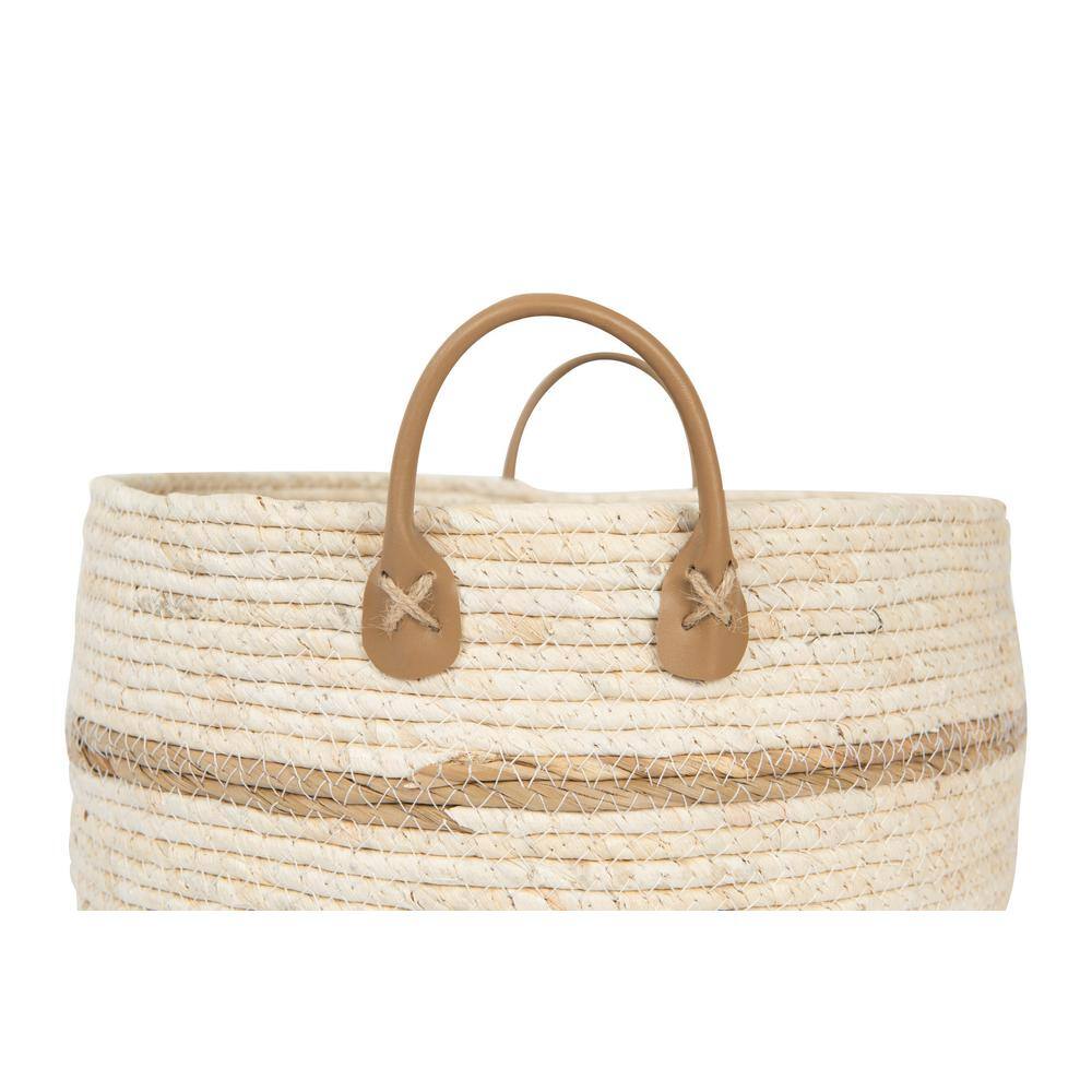 Zentique Hand Woven Seagrass and Palm Leaf with Dark Stripes and Handles Medium Basket