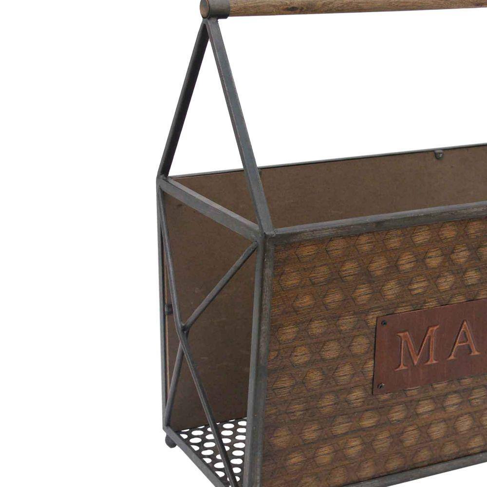 Benjara Brown and Gray with Handle and Typography Rectangular Wood and Metal Frame Basket