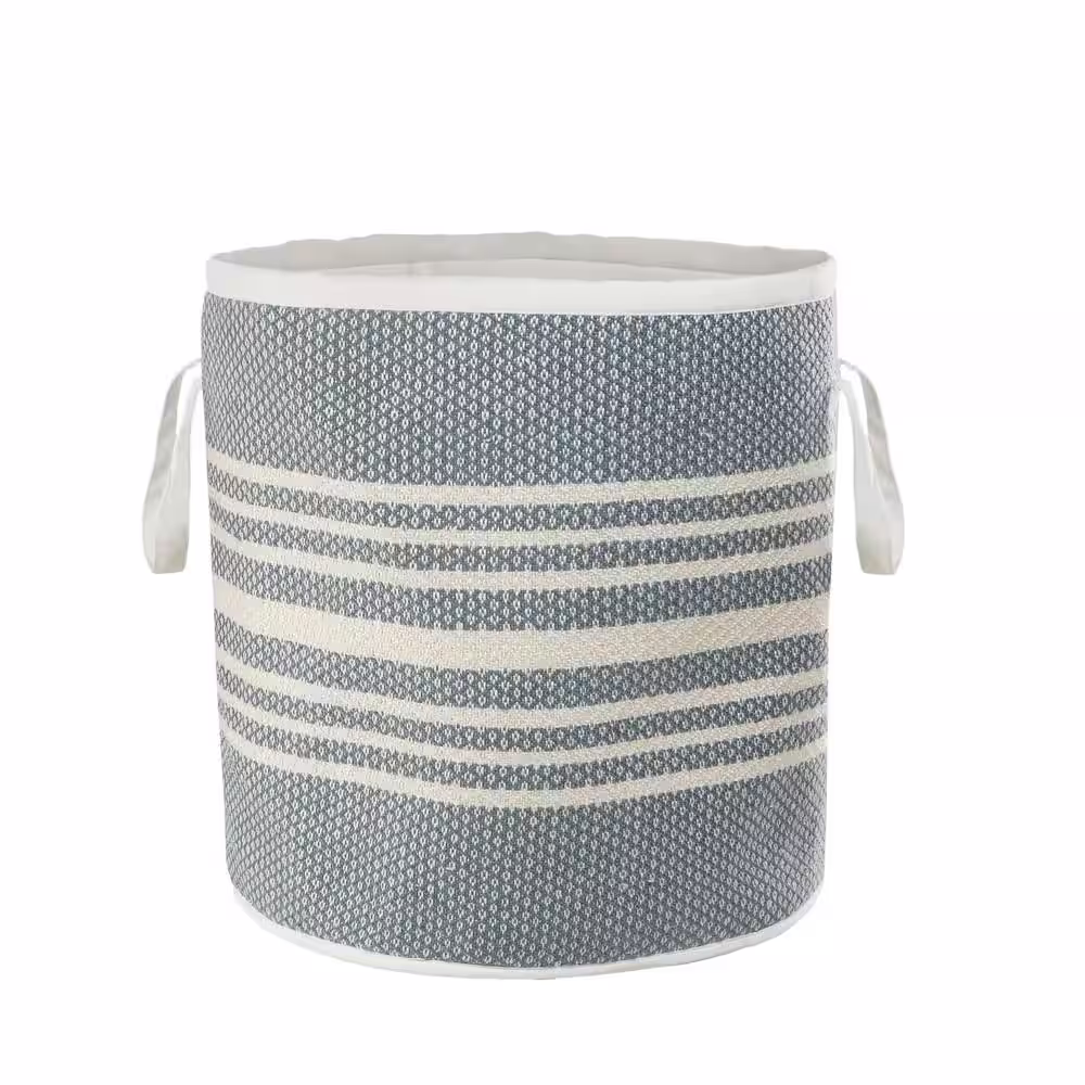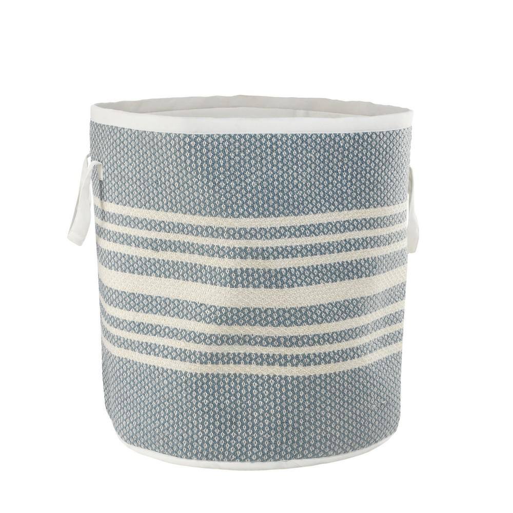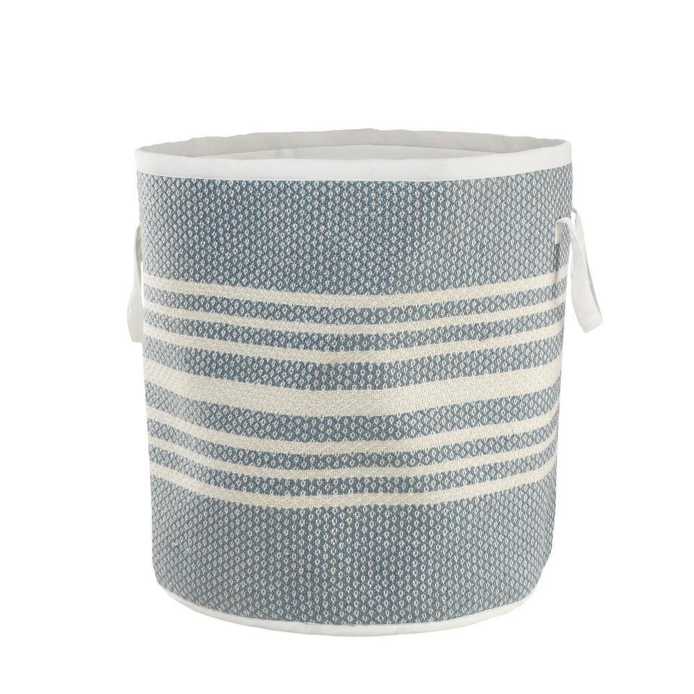 LR Home Valerie Simple Stripe Blue / White Polyester Farmhouse Indoor Outdoor Storage Basket