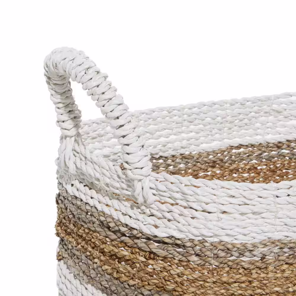 Litton Lane Plastic Rattan Handmade Two Toned Storage Basket with Handles (Set of 3)