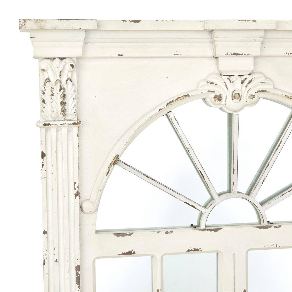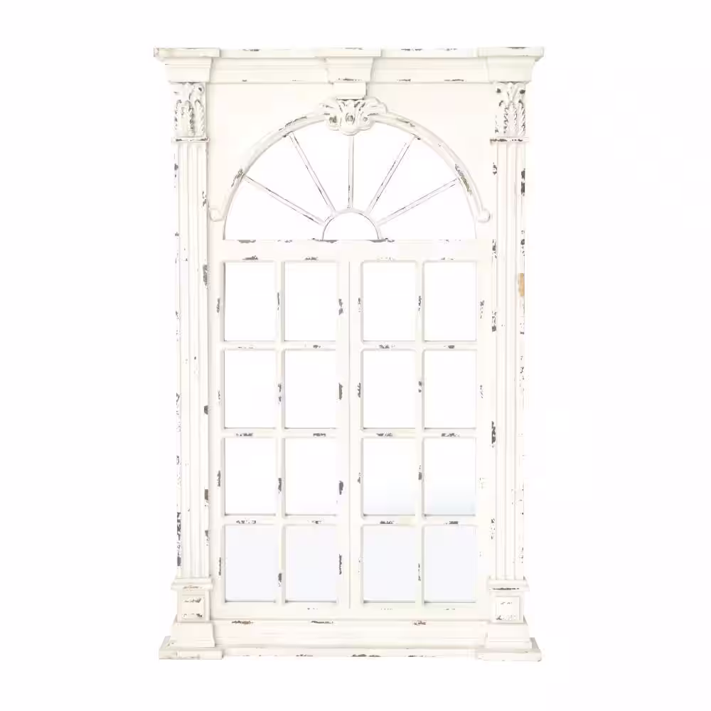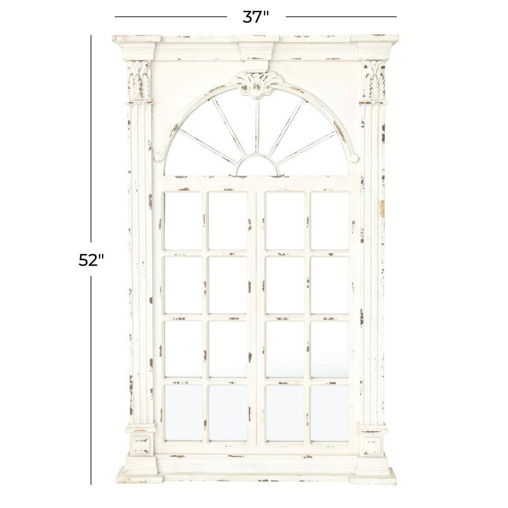 Litton Lane 52 in. x 37 in. Window Pane Inspired Rectangle Framed Cream Wall Mirror with Arched Top and Distressing