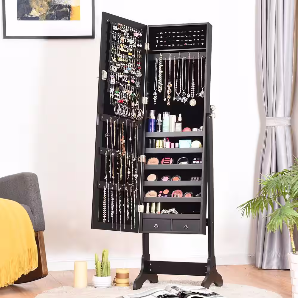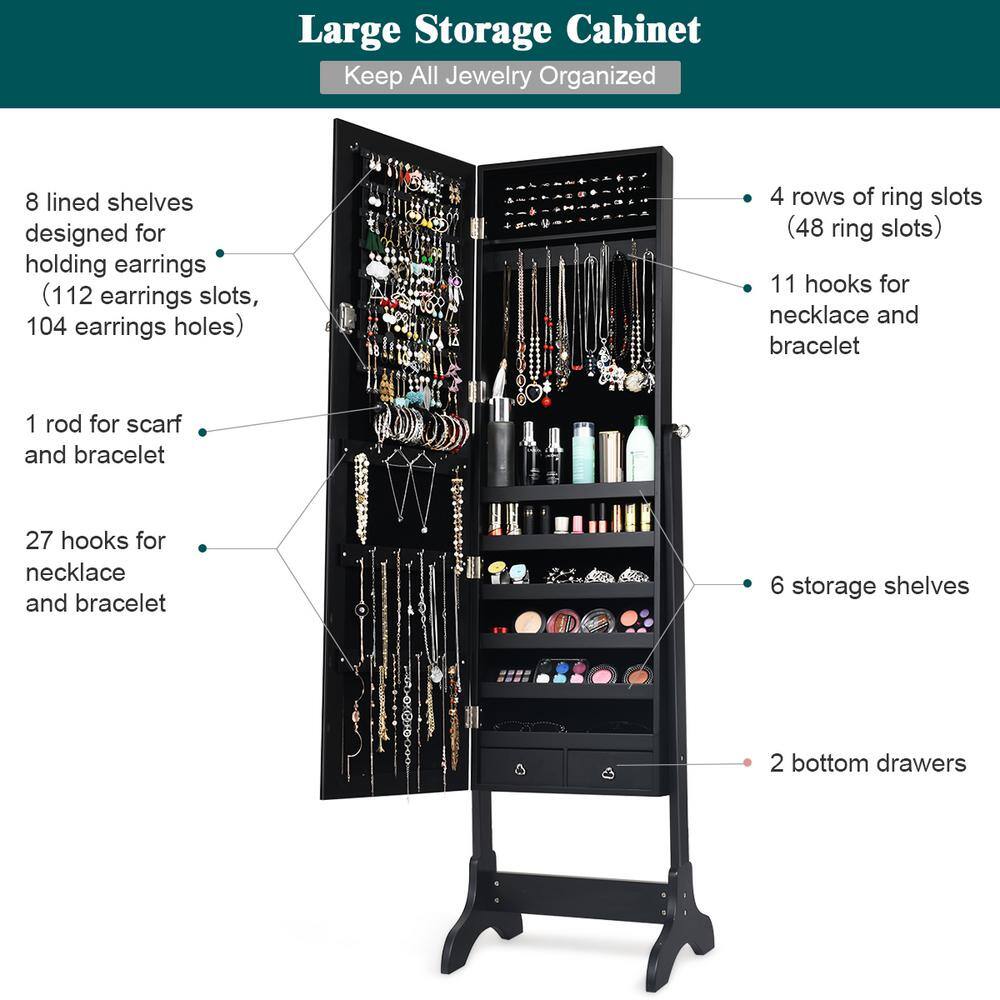Costway Black MDF Door Mounted Glass Jewelry Cabinet Storage Organizer