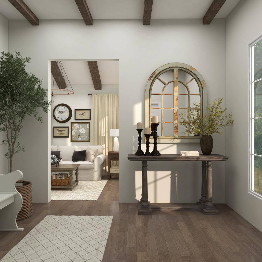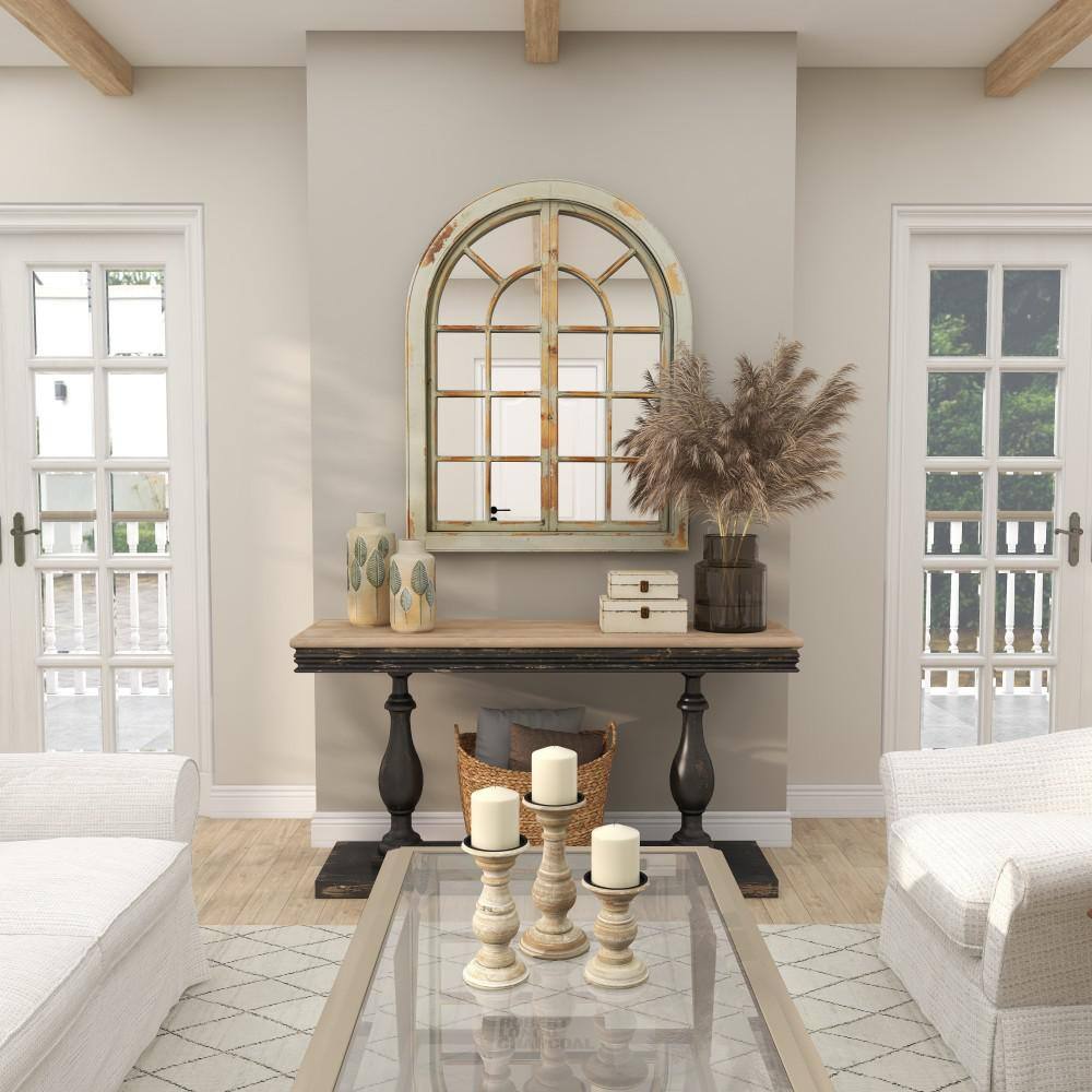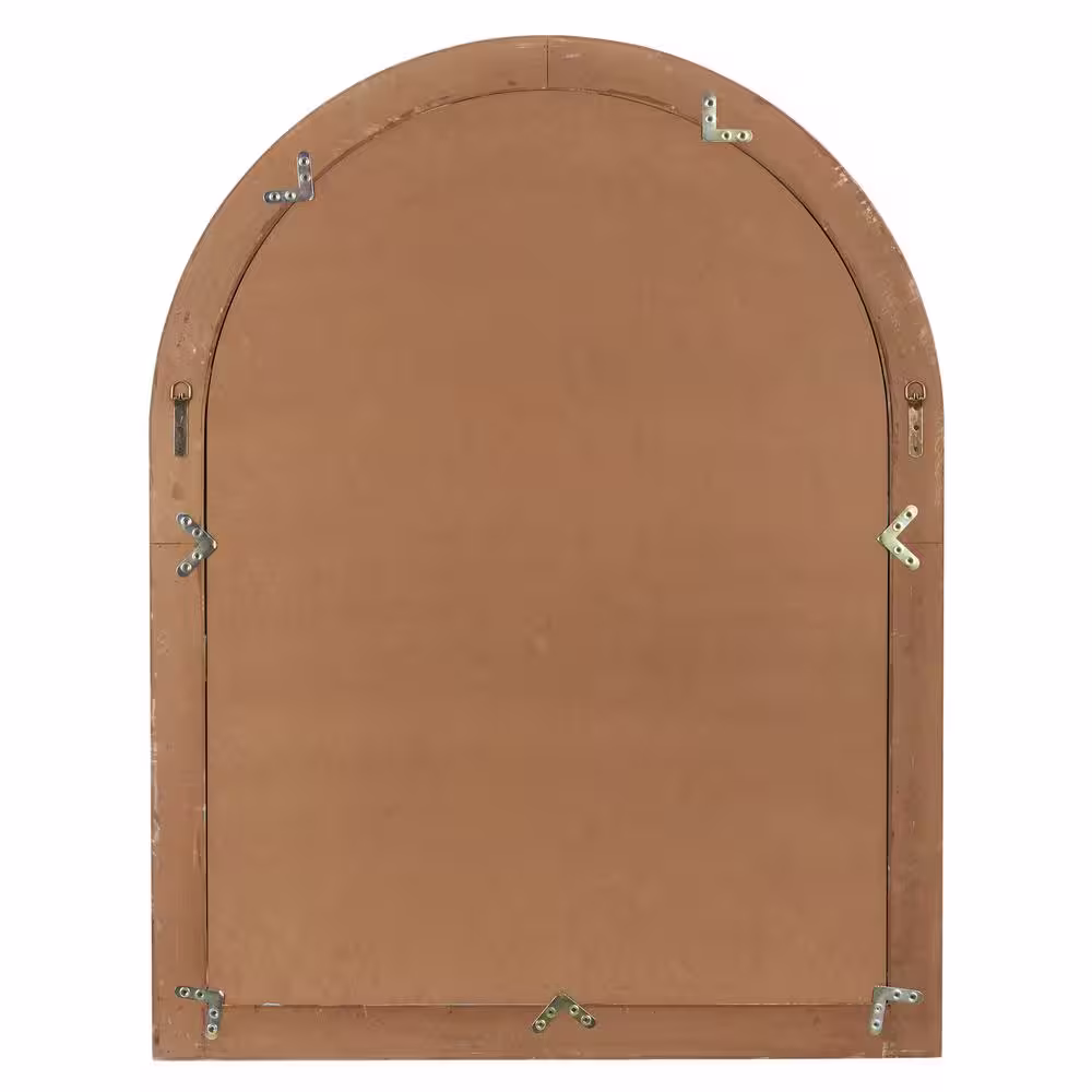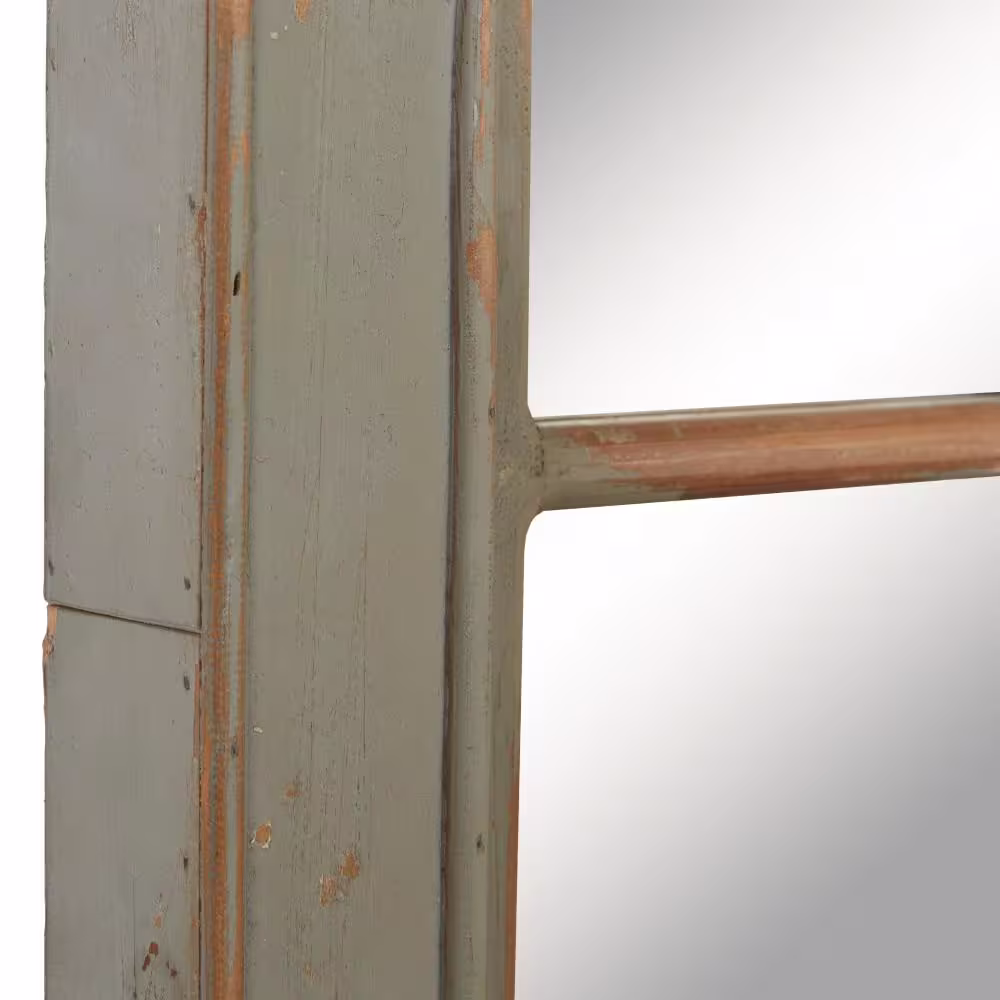Litton Lane 48 in. x 37 in. Window Pane Inspired Arched Framed Gray Wall Mirror with Arched Top and Distressing