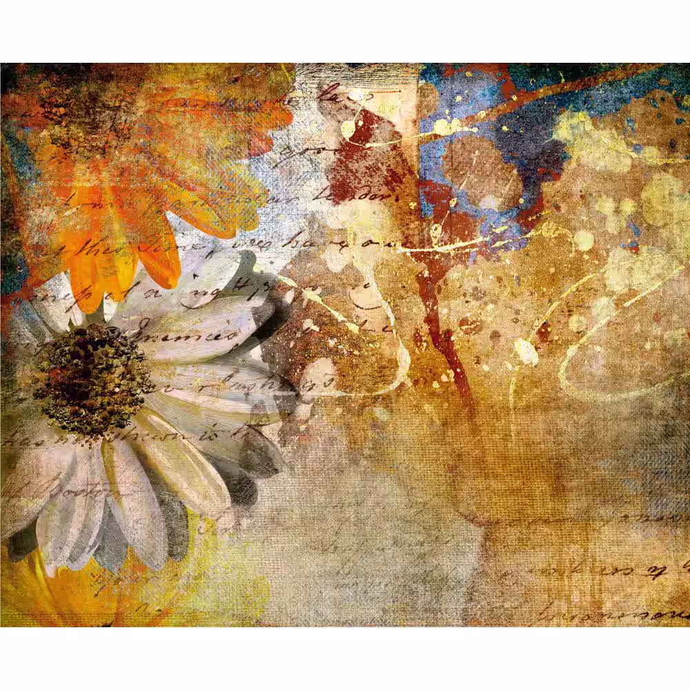 Dundee Deco White Orange Flowers Painting Abstract Floral Non-Woven Wall Mural