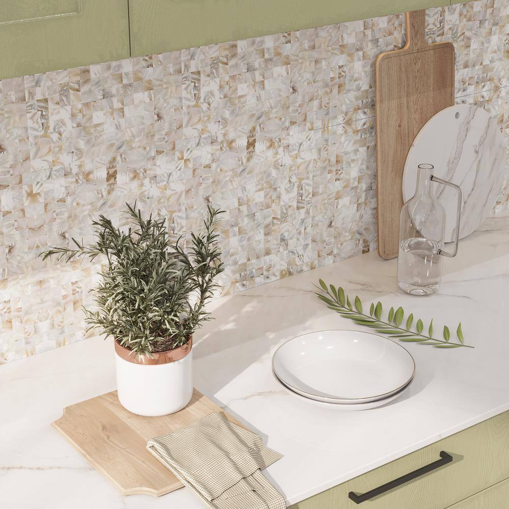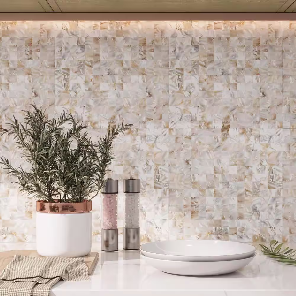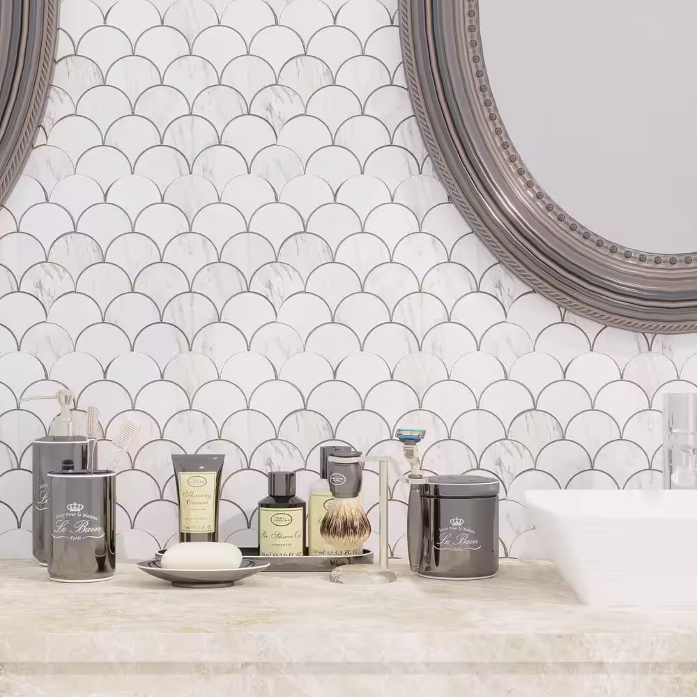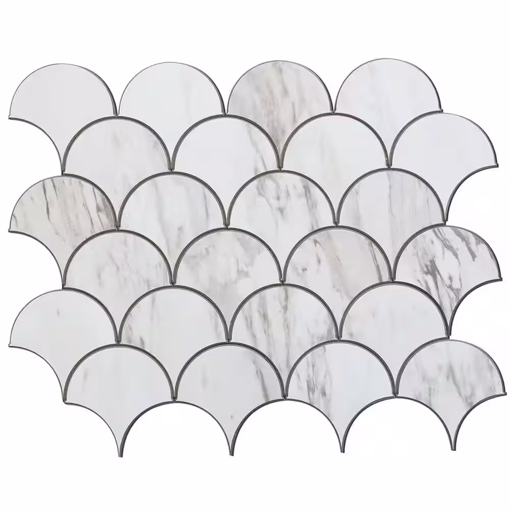 None Leaf Waterjet 6 x 6 x 0.3 in. White color Peel and Stick Backsplash Stone Composite Wall Tile