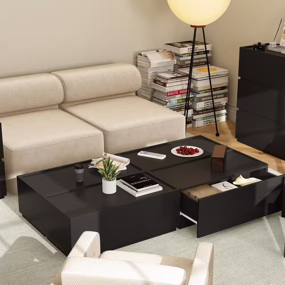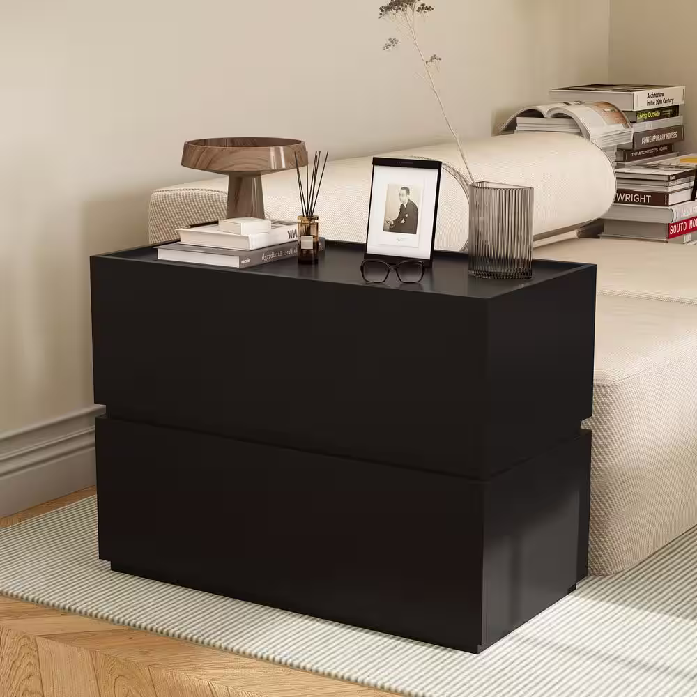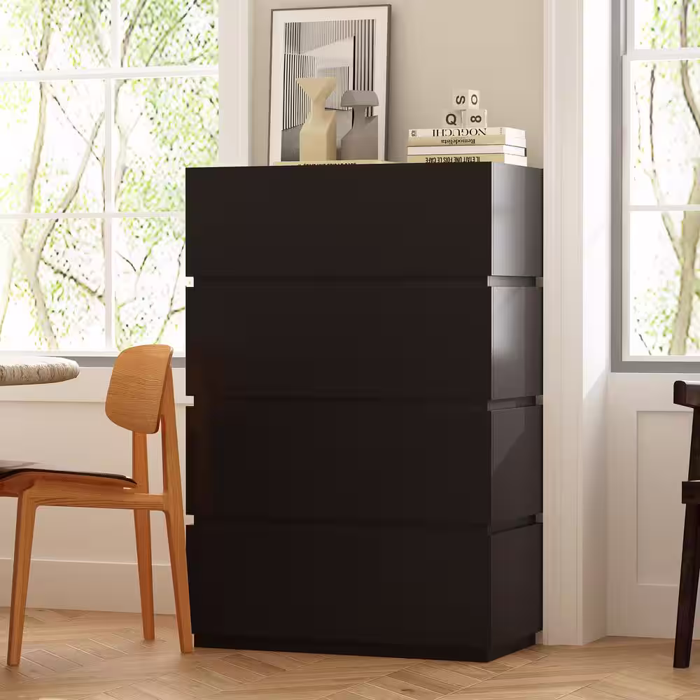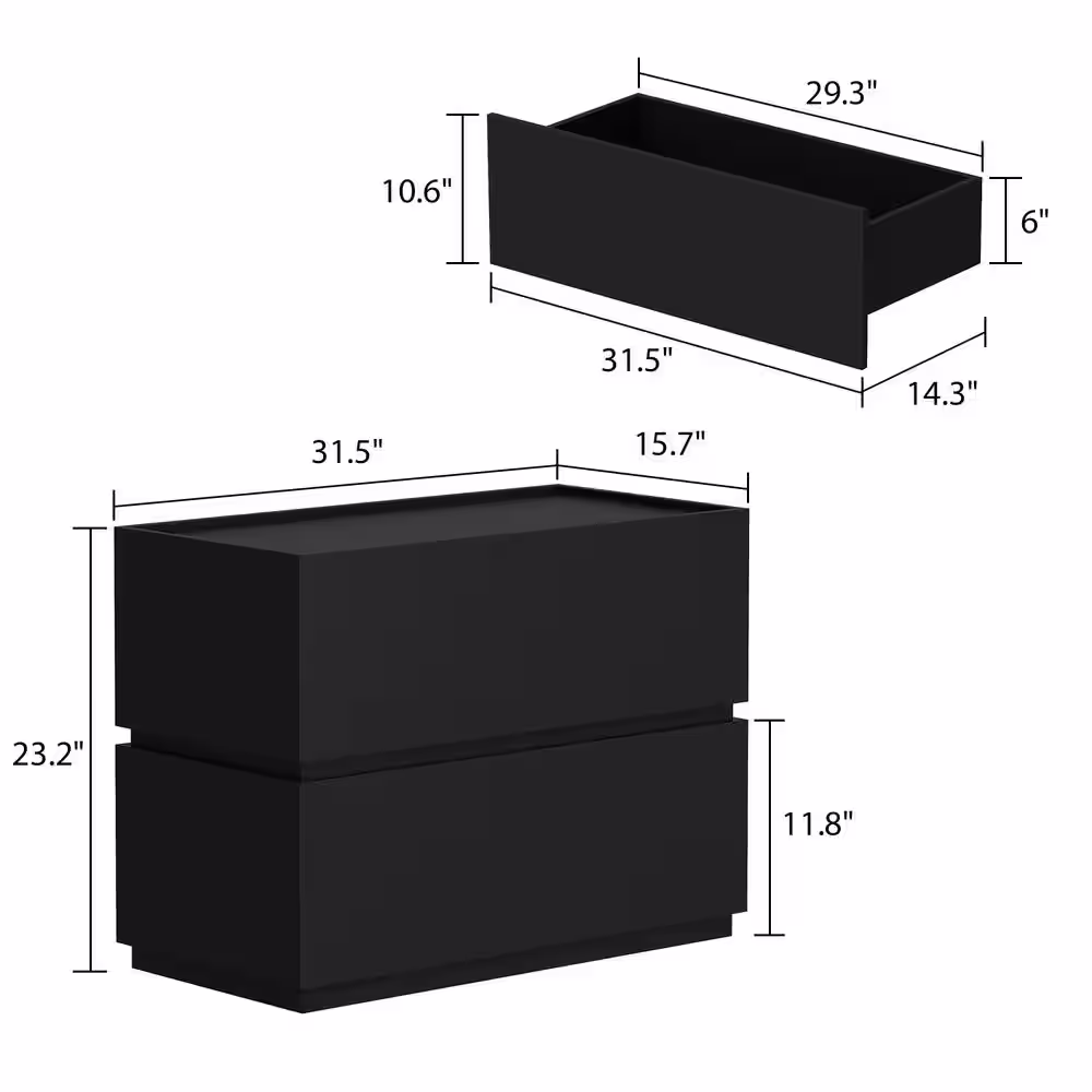 None High Gloss Wood DIY Modular Kit Modern Black Storage Cabinet With Drawers (2 Piece)