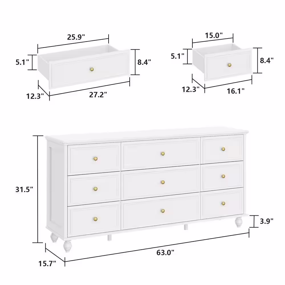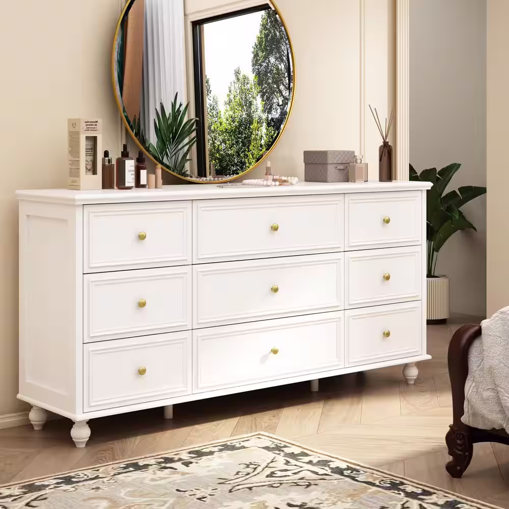 None White Wooden Modern European Style Accent Storage Cabinet with 9-Drawer