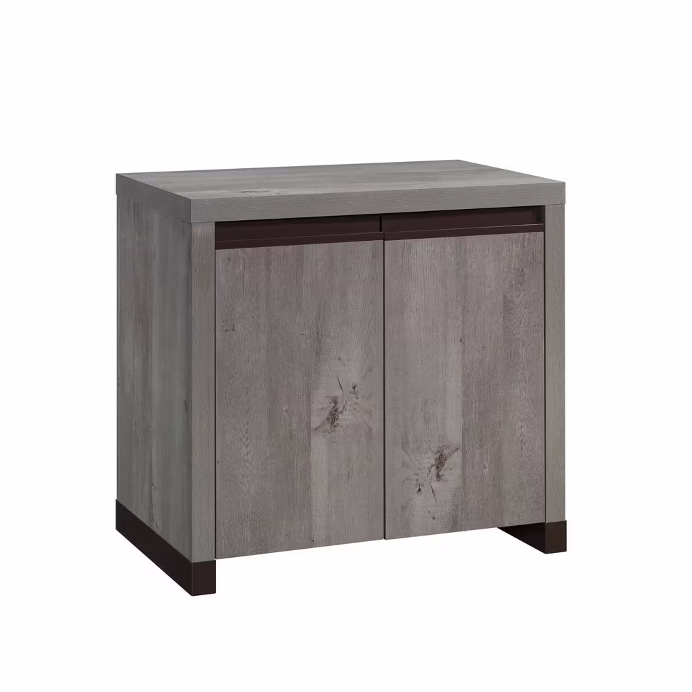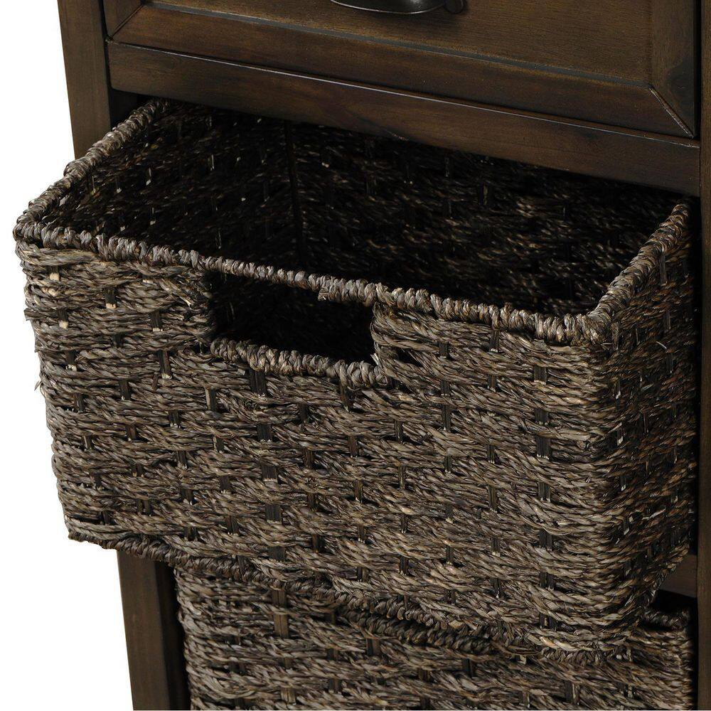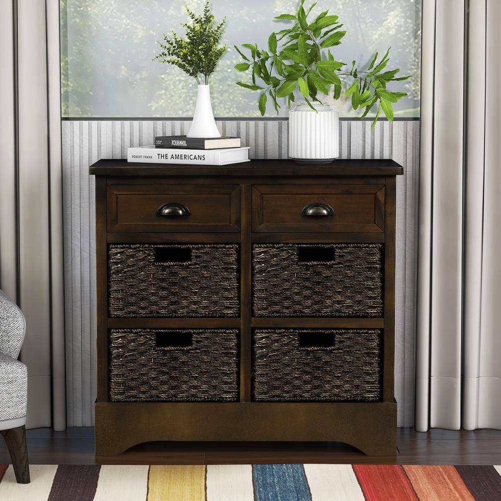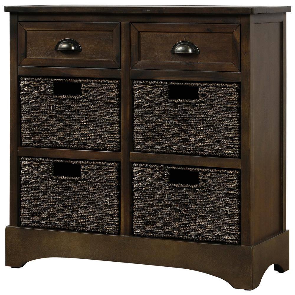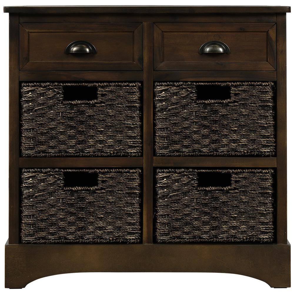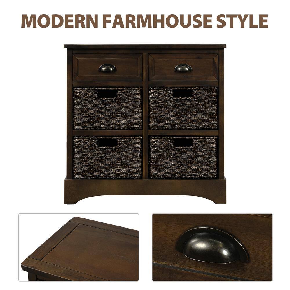 Harper & Bright Designs Dark Brown Rustic Storage Cabinet with 2-Drawers and 4-Classic Fabric Basket