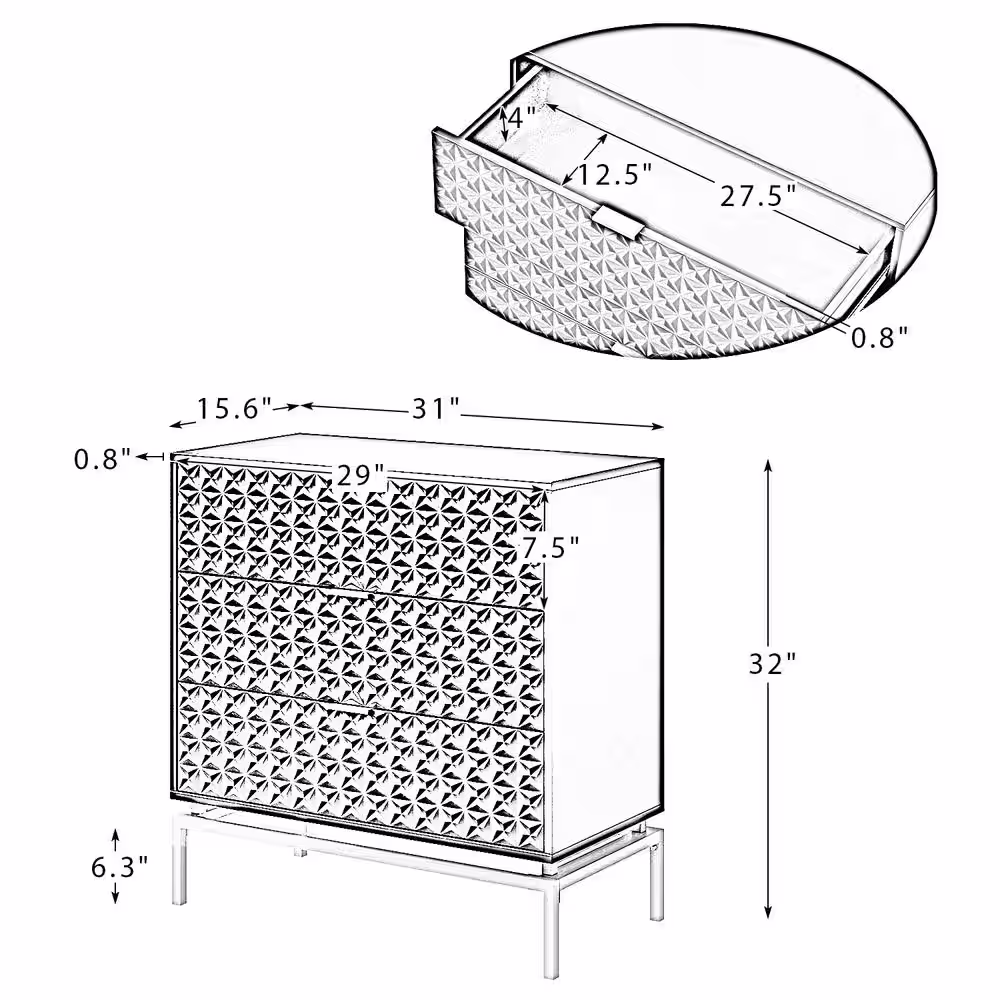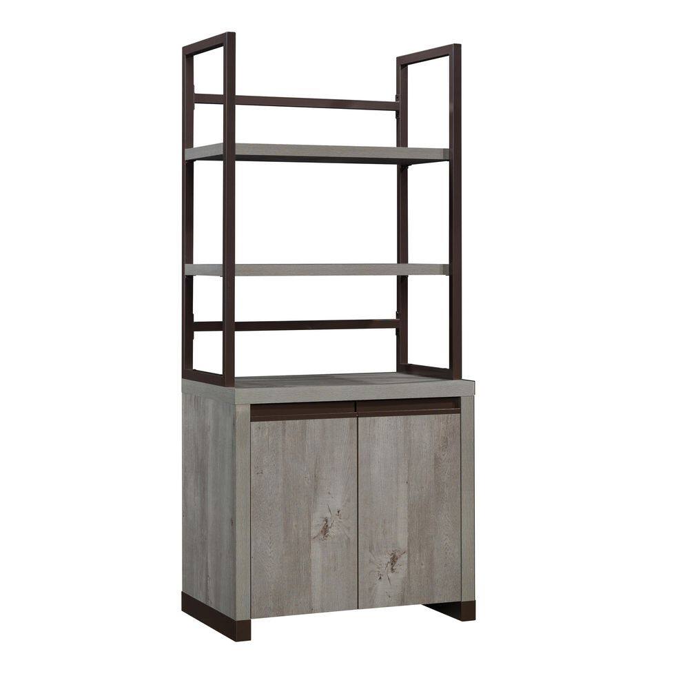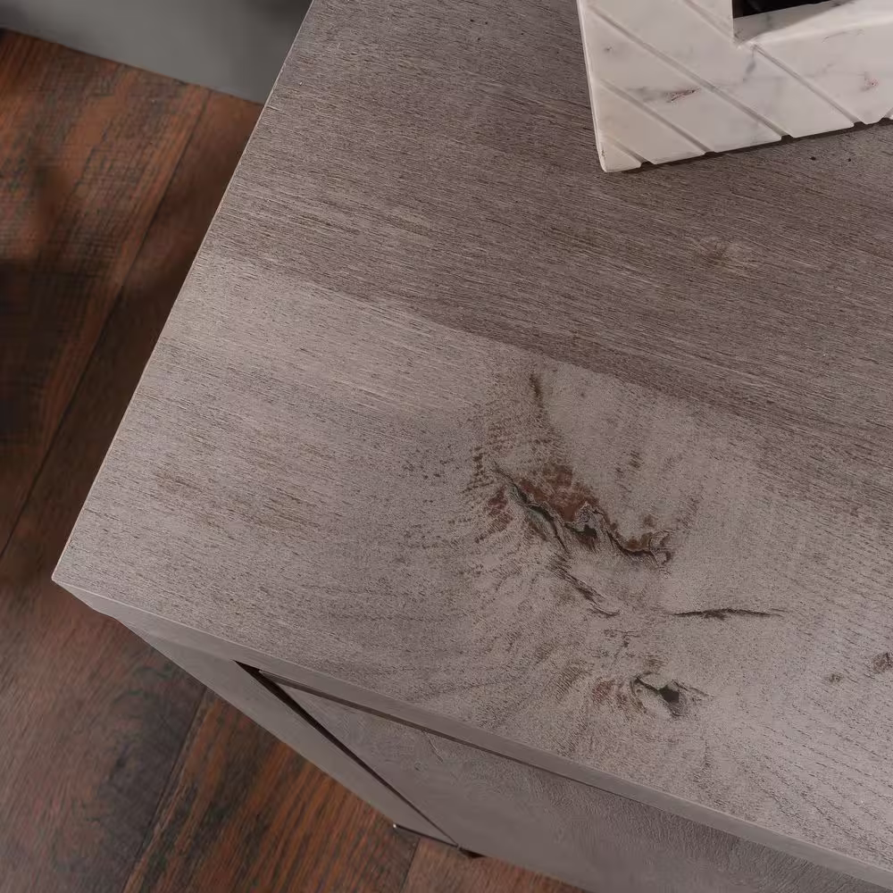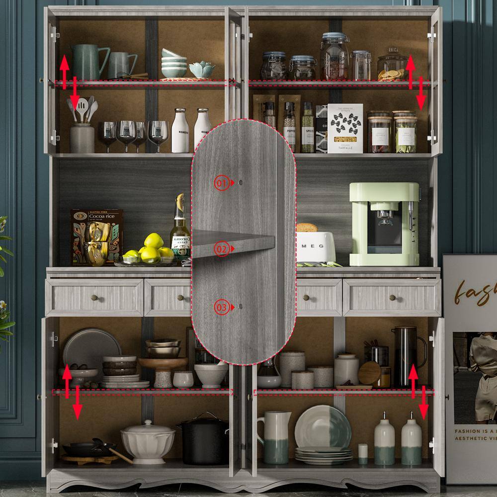 None Gray Retro Style Wood Accent Storage Cabinet with 3-Drawer, Tempered Glass Doors and Adjustable Shelves