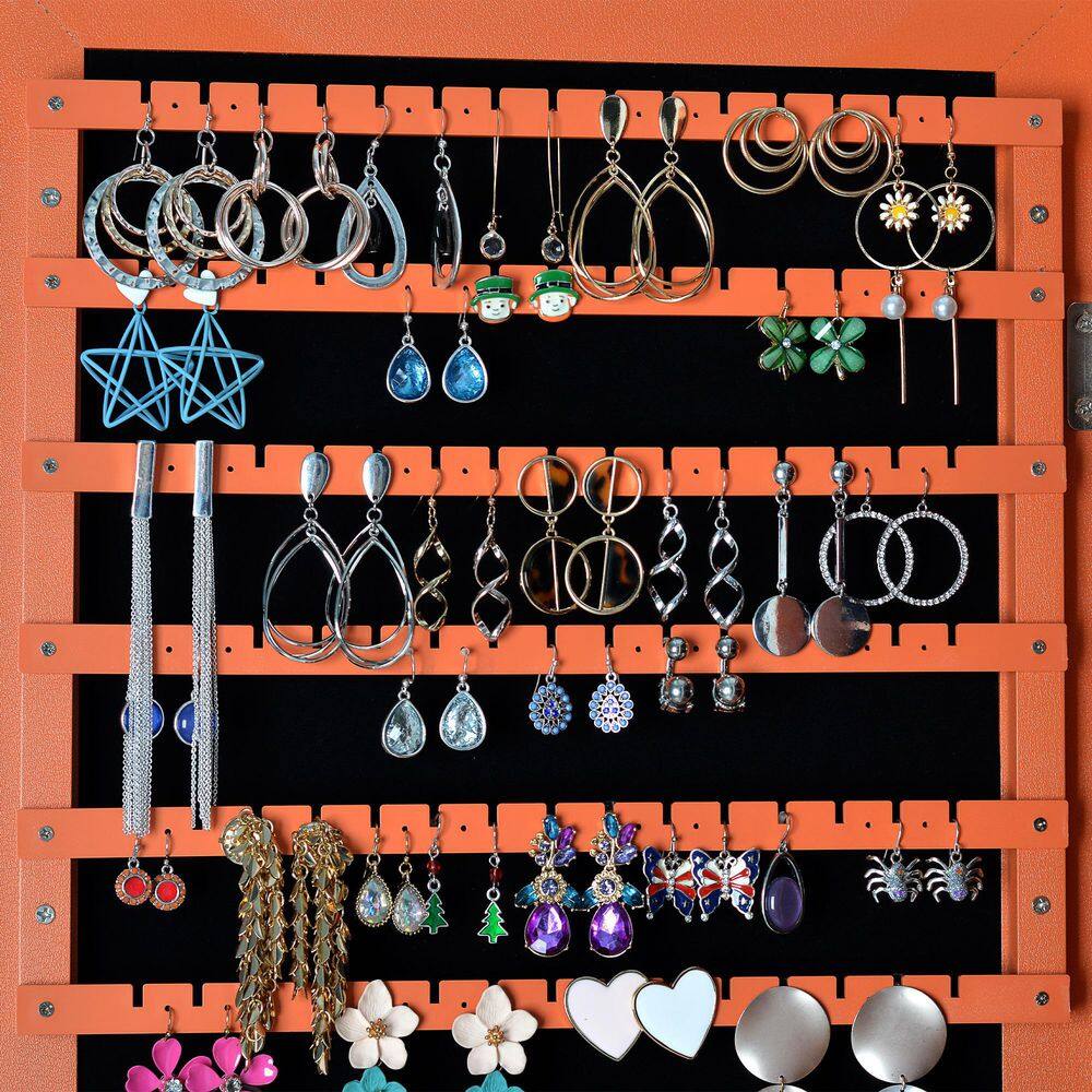 Unbranded Orange Fashion Simple Jewelry Storage Mirror Cabinet with LED Lights