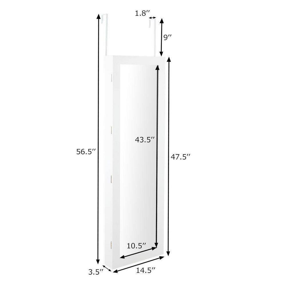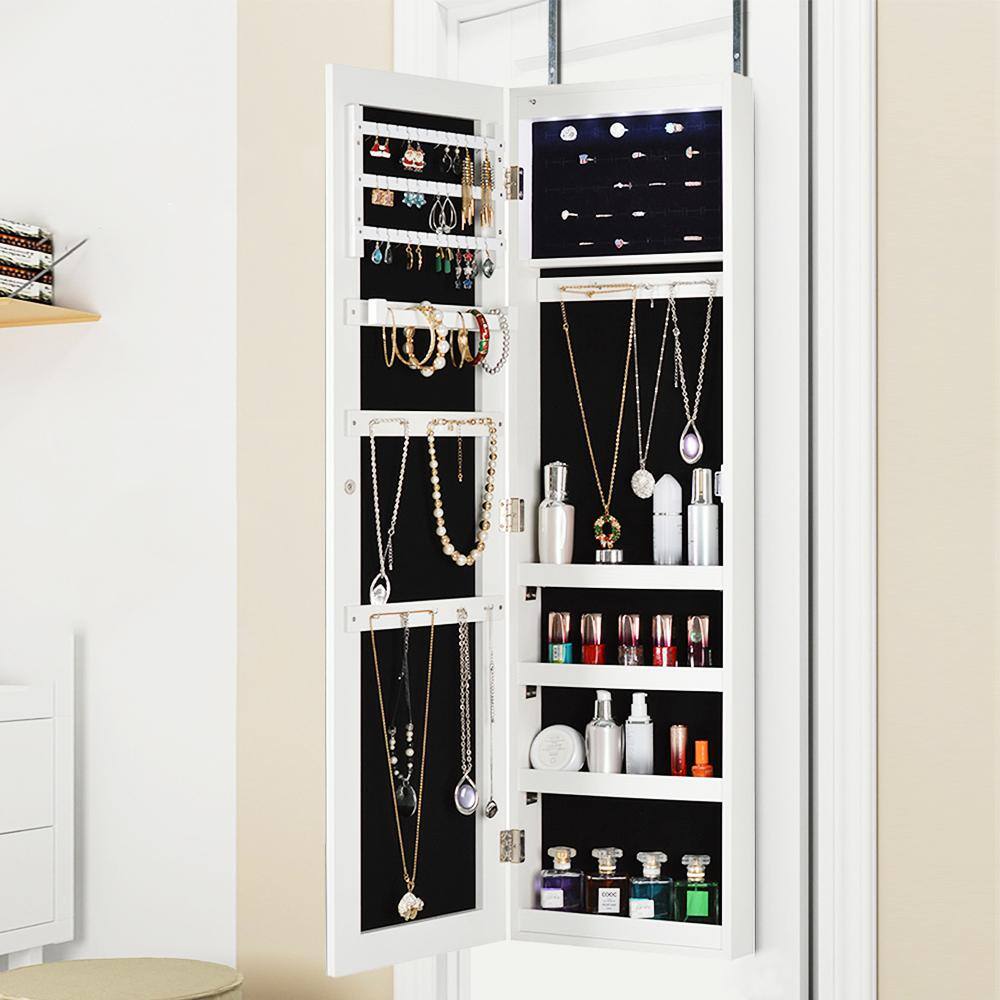 HONEY JOY White Door Mounted Mirrored Jewelry Cabinet Dressing Storage Box with LED lights